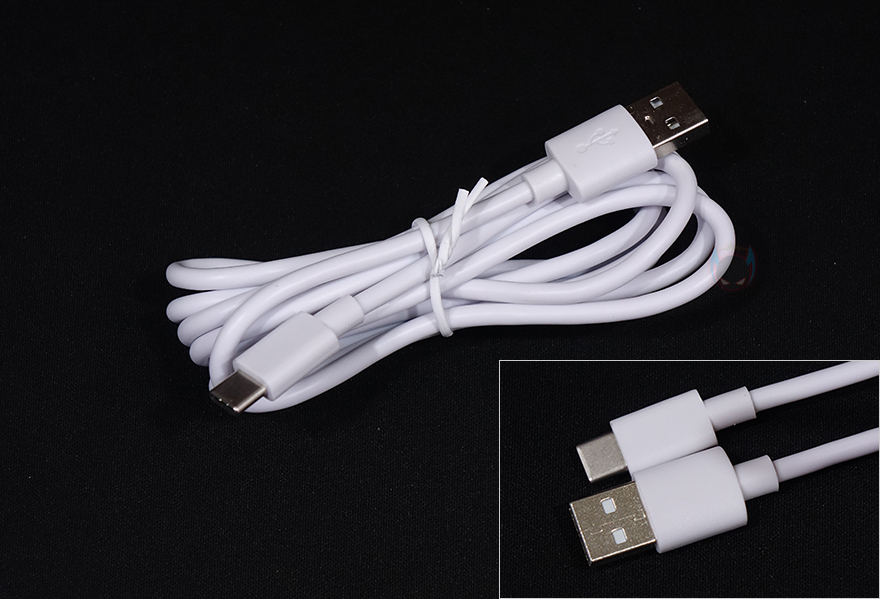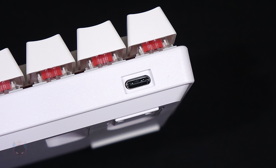 이번엔 키보드 하우징 케이스를 살펴보면, 키보드 전면 한쪽에는 분리형 USB 전원/충전케이블과 연결되는 USB Type-C 포트가 배치되어 있으며, 측면에서 보면 타이핑에 최적화라 불리는 스텝-스컬처 2 단계배열이 기본적으로 적용되어 있으며, 바로 뒤에서 확인하겠지만, 키보드 밑바닥에 높낮이 받침대가 적용되어 있어서 경사 각도도 높일 수 있습니다. 키보드 밑바닥에는 모서리 부근으로 미끄럼방지 고무패드가 기본 부착되어 있으며, 중앙에는 무선 On/Off 스위치가 배치되어 있습니다. 그리고, 양쪽 앞부분에는 높낮이 받침대가 적용되어 있고, 받침 부분에도 모두 고무패드가 부착되어 있죠. 끝으로, 분리형 USB 전원/충전케이블은 총 1.6m 길이에 USB Type-C to A 인터페이스를 갖추고 있습니다.