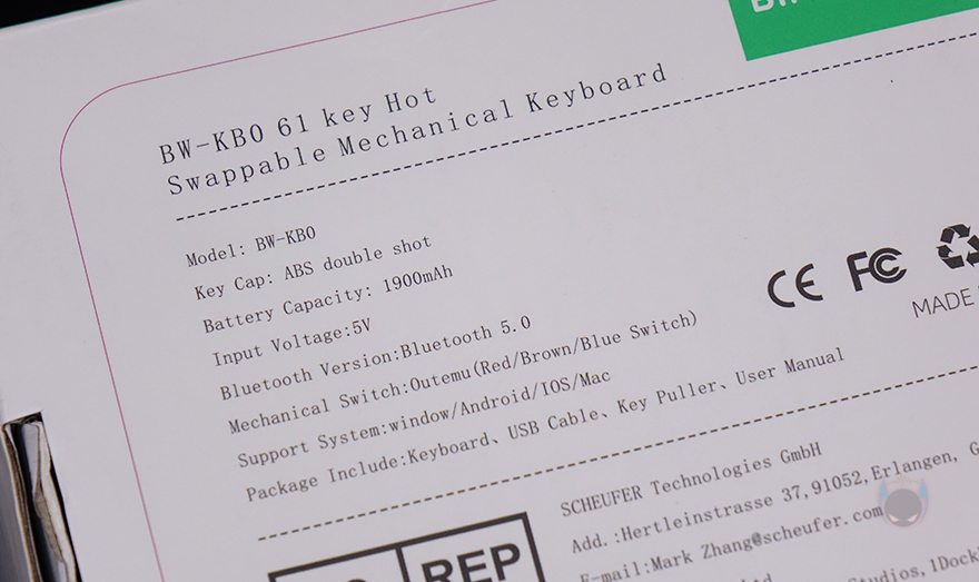 Blitzwolf BW-KB0 키보드 제품박스부터 살펴보면, 원래 Blitzwolf 제품들은 제품박스가 단조운게 특징이죠. BW-KB0 역시 박스 전면에 모델명만, 그리고 박스 후면에는 간단하게 제품 기본 사양정도만 표기를 해놨습니다. 그래도, 블루투스 지원이라든지 배터리용량, 스위치 등의 정보는 충분히 확인이 됩니다. 그리고, 박스를 열어보면, 키보드 포장은 기본방식인 비닐 포장을 하고 있으며, 구성품은 BW-KB0 키보드, 분리형 USB 전원/충전케이블, 키-캡 리무버, 스위치 리무버, 제품설명서로 이루어져 있죠.