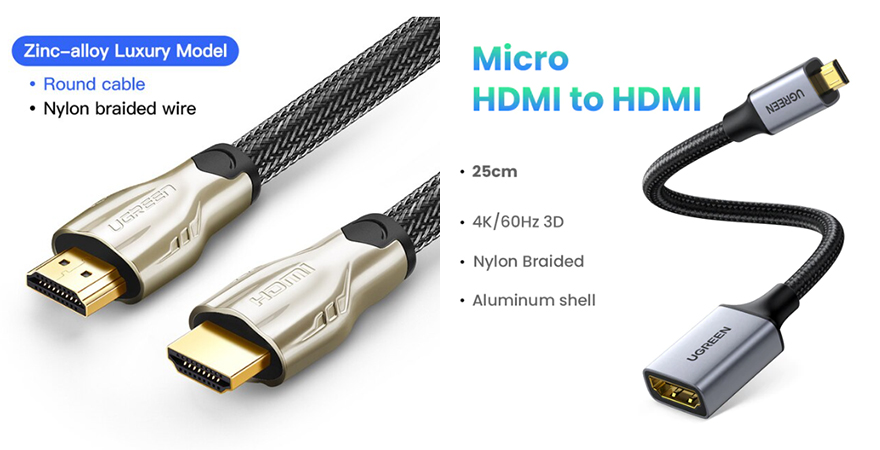 직접 유그린(Ugreen) HDMI 케이블들을 사용해보면, 기본 HDMI 케이블은 특별한 점 없이 외부 모니터나 TV 연결용으로 사용되고, 4K UHD 60Hz 주사율까지 지원하기 때문에, 4K 모니터나 TV에 사용하면 최적이라 할 수 있겠습니다. 그리고, 마이크로 HDMI 케이블은 앞서 잠깐 언급했듯이 주로 카메라에 마이크로 HDMI 포트를 갖추고 있기 때문에, 4K 촬영 같은 작업 시 모니터링을 위해 외부 모니터와 카메라를 연결할 때 사용하면 유용합니다.