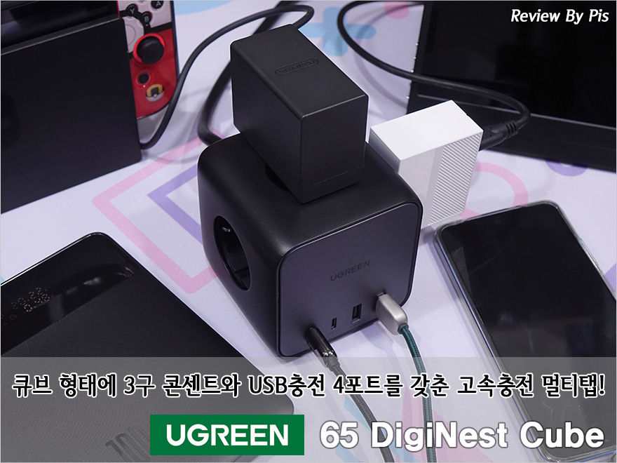 플러그를 여러 개 꽂을 수 있는 장치를 국내에선 멀티탭이라고 부르죠. 사실 멀티탭의 정식 명칭은 파워스트립(Power strip)입니다. 아무튼 국내에선 일반적인 멀티탭은 플러그를 여러 개 꽂을 수 있게 콘센트만 갖추고 있습니다. 하지만, 해외에선 이런 기본적인 제품 외에 요즘 같이 USB 케이블로 충전하는 전자제품들이 많다 보니 USB 충전포트까지 갖춘 멀티탭 제품들이 점점 많이 출시되고 있죠. 앞전에 만난 유그린(Urgeen)의 'DigiNest Life'라는 제품이 여기에 해당되는데, 최근에 유그린에서 이보다 더 사이즈가 작으면서 콘센트와 충전포트를 더 갖춘 제품이 나왔습니다. 바로, 65W DigiNest Cube 모델이죠. 그래서, 이번 시간에는 유그린의 최신 파워스트립 제품 '65W DigiNest Cube'를 한 번 살펴보도록 하겠습니다.
