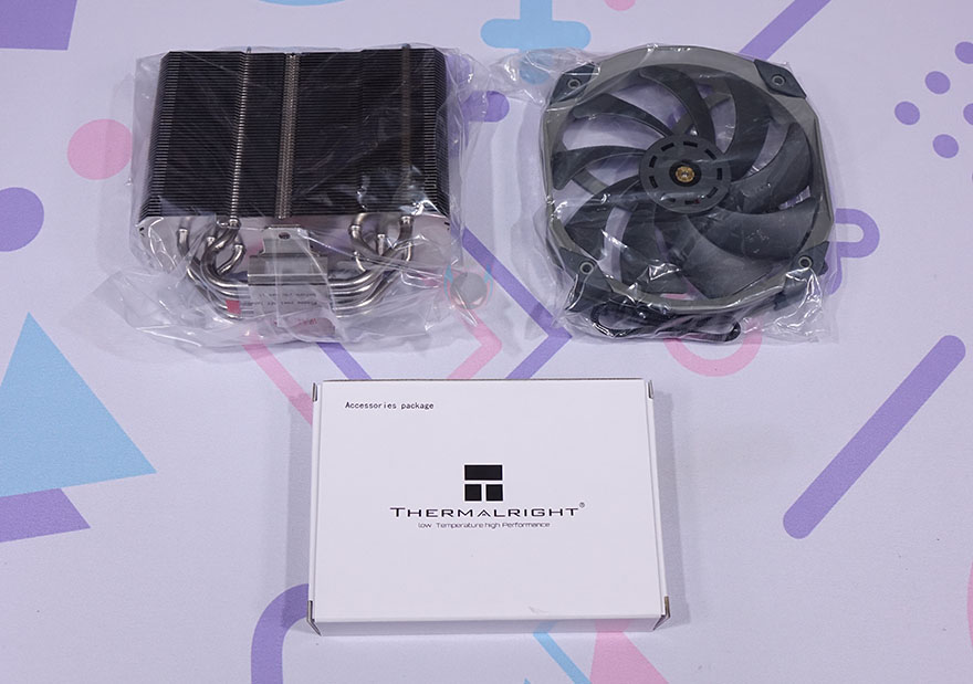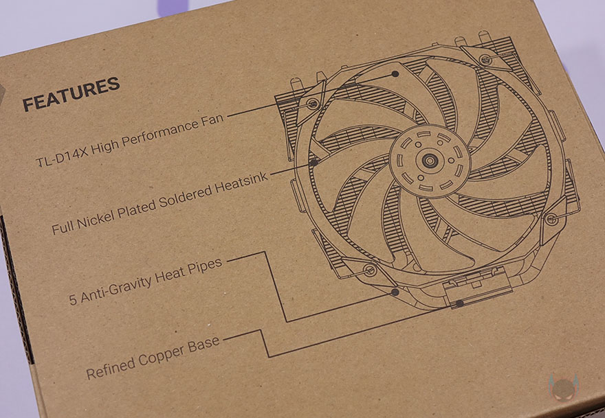 박스를 열어보면, 외부 충격방지를 위해 우레탄-폼 포장재를 사용했으며, 히트싱크와 팬은 비닐포장 되어있으며, 부속품들은 별도의 박스에 담겨 있습니다. 제품구성은 TA140 EX 히트싱크(Heatsink), TL-D14X 팬(Fan), 인텔용 LGA 115x 백플레이트, 인텔용 브라켓, AMD용 브라켓, 팬 클립, Y자 팬 연장케이블, Standoff, 인텔용 나사, AMD용 나사, 너트, 팬 방진 패드, 써멀컴파운드, 제품설명서로 이루어져 있습니다.