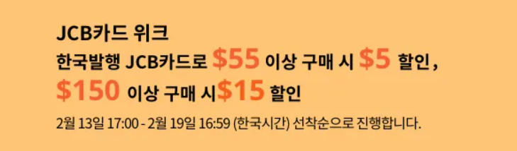 $10 할인코드(23KR0210) + JCB 카드 결제시 추가할인($15)