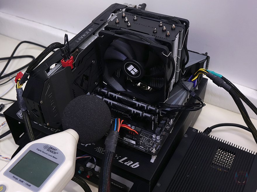 이번엔 4.9GHz의 2차 오버클럭에서도 확인을 해봤는데, 역시 CPU 온도는 1차보다는 한 단계 아래지만, 여전히 전체 쿨러들 중 5번째로 낮은 온도로 쿨링성능이 높다란 걸 보여주고, 메인보드 전원부 쿨링효과는 오히려 더 좋은 모습을 보여주면서 듀얼-팬 구성으로 보여줄 수 있는 만족스러운 쿨링성능은 제대로 보여줬다 할 수 있습니다. 그리고, 2차 진행에서 팬 소음과 속도를 측정해 본 결과, 소음은 듀얼-팬 구성임에도 4번째로 낮은 소음대를 보여줬으며, 팬 속도는 과부하 시 오차범위 내에서 최대 속도로 작동되는 것을 확인할 수 있었습니다. 전체적으로 보면 속도대비 소음이 낮으면서 듀얼-팬 구성으로 쿨링 성능을 잘 보여주는 제품이라 할 수 있습니다.
