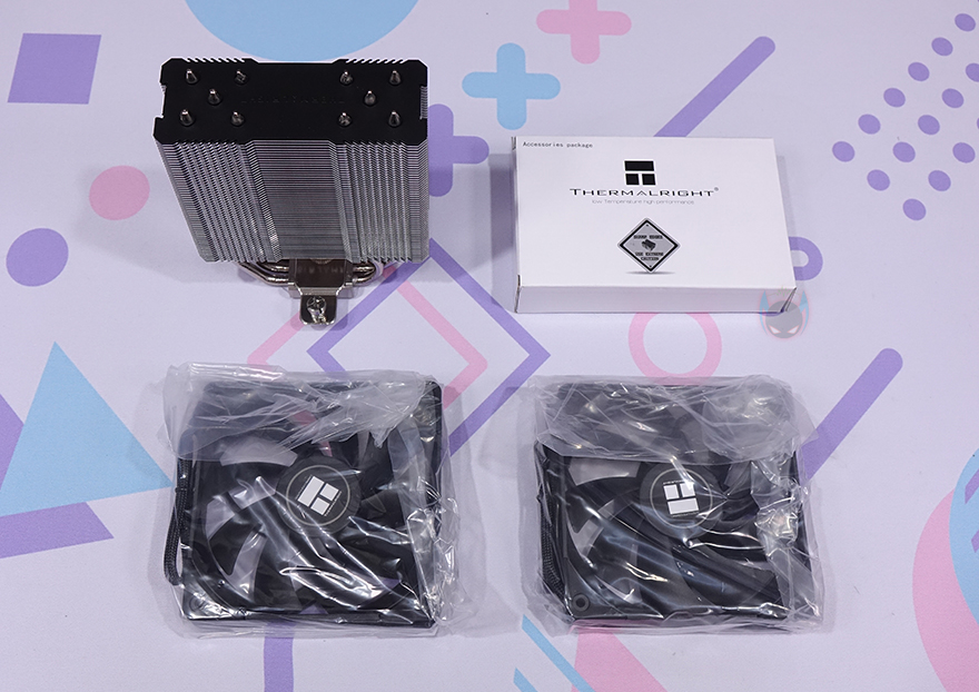 박스를 열어보면, 맨 윗칸에는 부속품이 담긴 별도의 박스 포장을 확인할 수 있으며, 그 아래에 히트싱크와 팬이 포장되어 있는데, 팬은 비닐포장까지 적용되어 있으며, 외부 충격방지를 위해 우레탄-폼 포장재가 사용되었습니다. 제품 구성은 Assassin King 120 Plus 히트파이프, TL-C12B 120mm 팬 2개, 인텔 LGA 115x/1200용 백플레이트, 인텔용 브라켓, AMD용 브라켓, 스탠드오프(Standoff), 브라켓 너트, 인텔 LGA 20xx 나사, AMD용 나사, 팬 클립, Y자 연장 팬-케이블, 고무 패드, TF7 써멀그리스, 제품 설명서 제공으로 이루어져 있습니다.