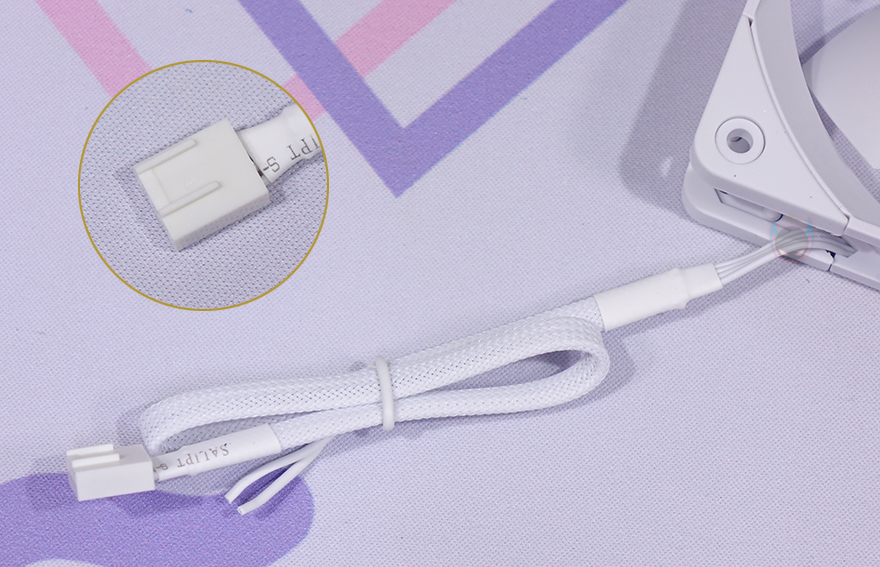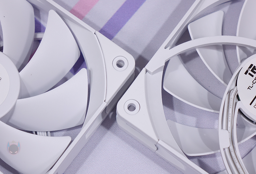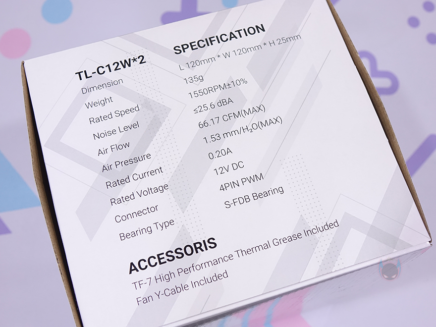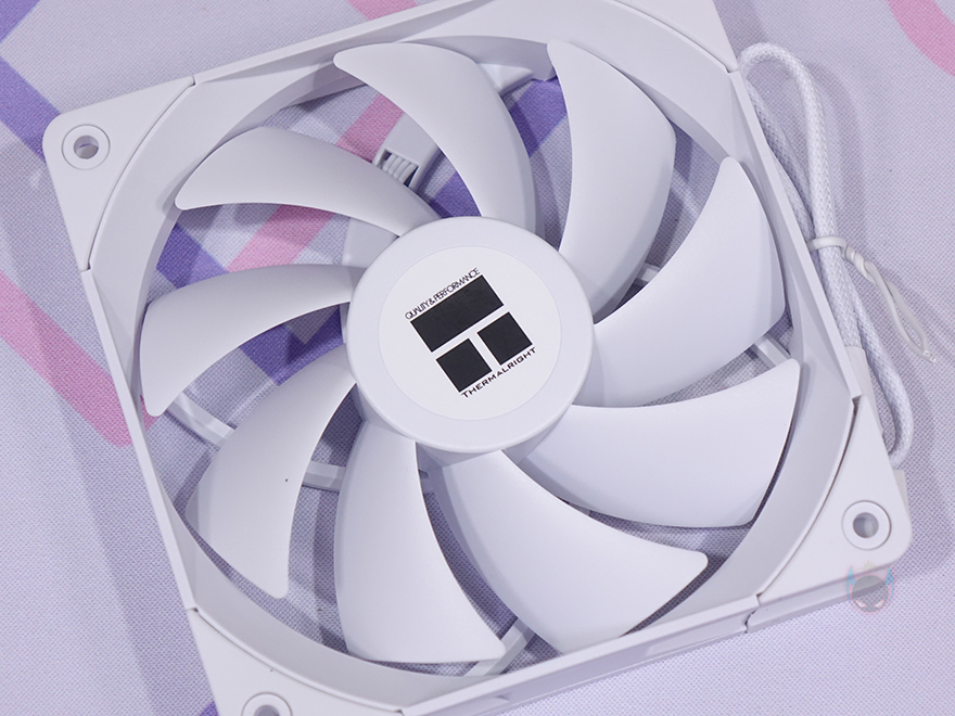 기본 제공되는 120mm 팬 역시 기존 Peerless Assassin 120 모델에서 제공되던 TL-C12 팬을 화이트버전으로 적용한 제품으로 모델명은 TL-C12W입니다. 색상이 바뀌었다라는 점을 제외하면, S-FDB 베어링부터 최대 1550(±10%)RPM 속도까지 사양 부분은 동일하죠. 물론, 팬 날개(Blade) 9개라든지 앞뒤 모서리 부근데 분리형 방진패드, 팬 케이블의 슬리빙처리와 4pin PWM 커넥터까지 모두 화이트색상으로 적용하고 있습니다.
