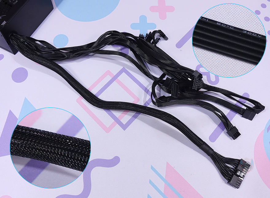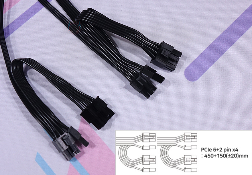 WIZMAX SILVER 제품들 역시 케이블은 메인보드 24핀 전원케이블은 슬리빙처리, 나머지 케이블들은 모두 플랫(Flat) 타입니다. 그리고, 사용된 전선 규격 역시 Gold등급 제품과 동일하게 인텔 파워서플라이 가이드라인 표준의 18 AWG를 사용했죠. 커넥터 지원은 메인보드 24핀, ATX 8핀 1개+8(4+4)핀 1개, PCIE 8(6+2)핀 4개, S-ATA 6개, P-ATA 4개 구성으로 앞서 언급했듯이 750W 용량의 Gold등급 제품과 동일합니다. 물론, 케이블 길이도 동일하죠.