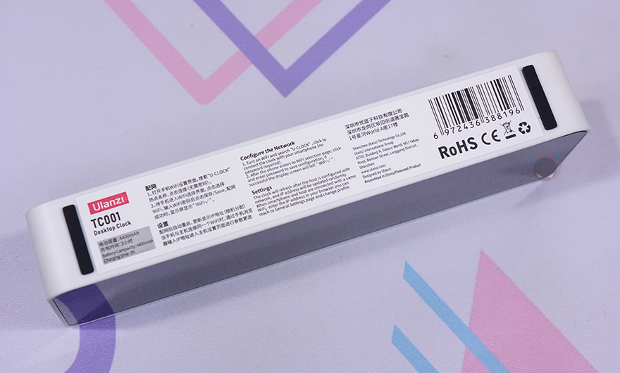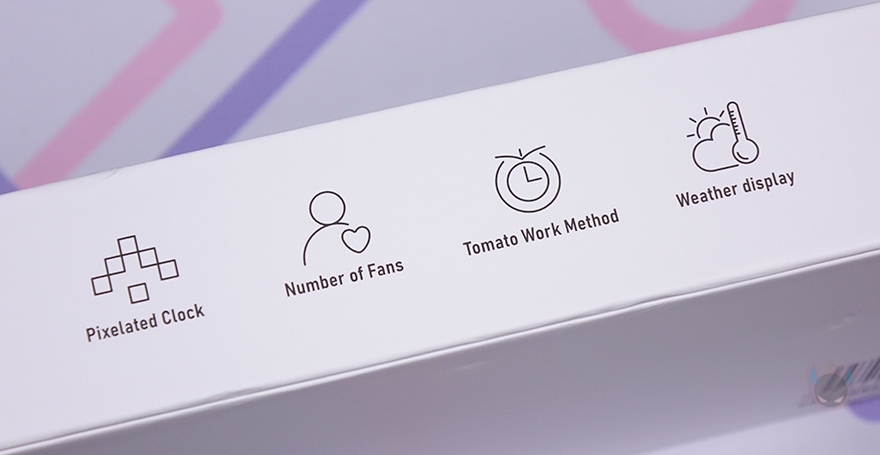 Ulanzi(울란지) 제품들 중 액세서리 제품군들은 대부분 박스까지 밀봉처리를 하는경우가 많죠. TC001 Smart Pixel Clock 역시 박스 전체가 밀봉처리되어 있어서, 소비자입장에선 판매제품에 신뢰를 가질 수 있습니다. 박스 전면에는 모델명과 함께 제품 이미지를 담고 있어서 개봉 전에 미리 제품 디자인을 확인할 수 있는데, 전형적인 디지털 탁상시계와 비슷합니다. 하지만, 박스 측면에 보면 주요 특징으로 픽셀시간(Pixelated Clock), 구독자 수(Number of Fans), 포모도로 타이머(Tomato Work Method), 날씨표시(Weather display)를 언급해 놔서, 단순히 시계 기능만 있는 제품이 아니라는 걸 짐작할 수 있습니다.