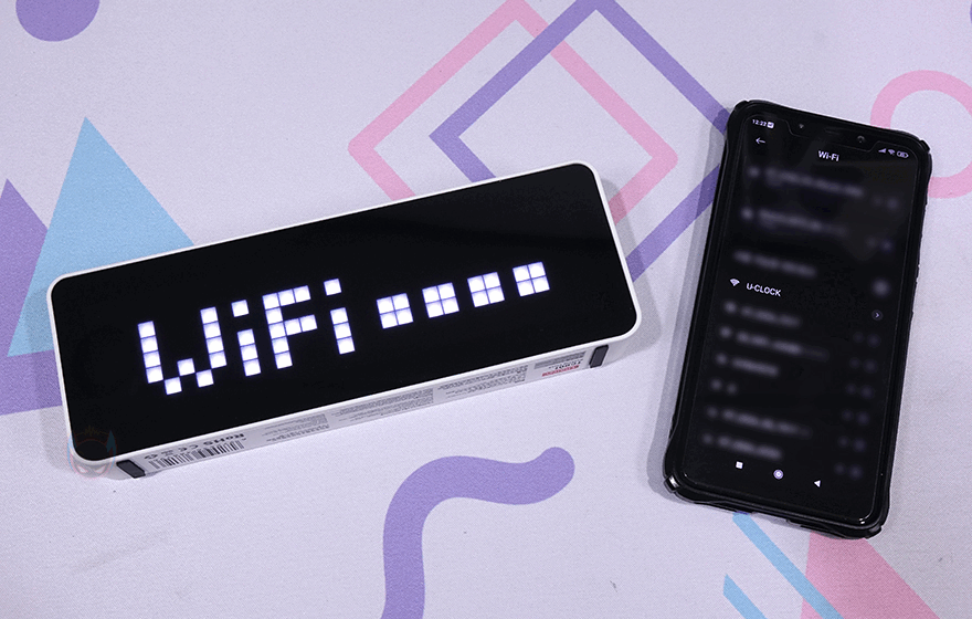 직접, Ulanzi(울란지) 탁상시계 'TC001 Smart Pixel Clock'을 사용해보는데, 왼쪽과 오른쪽 버튼(Left/Right Button)을 3초 이상 누르고 있으며, 전원 On/Off를 할 수 있습니다. 전원이 들어오면, 울란지 로고와 함께 WiFi 연결을 위한 IP주소가 나오는데, Wi-Fi 기능이 있는 PC나 스마트폰에서 검색된 'U-CLOCK'를 선택하면, TC001 Smart Pixel Clock 기기의 Wi-Fi 연결진행이 나옵니다. 그럼, 사용자가 이용하고 있는 Wi-Fi를 선택해서 연결해 주면 되죠.