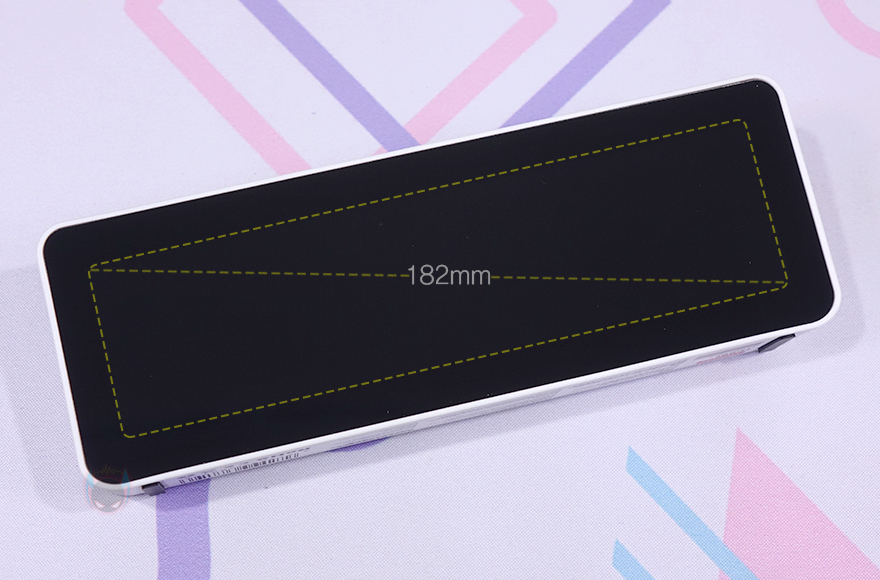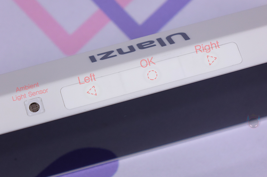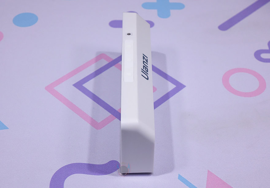 물론, 전면 전체가 디스플레이를 차지하고 있는 것은 아닙니다. 쉽게 말해 디스플레이 테두리 베젤이 적용되어 있다라는거죠. 대각선 방향기준으로 화면을 보여주는 영역은 약 182mm로 7.1인치 크기정도입니다. 그리고, 측면에서 보면 후면 윗부분이 경사도를 가지고 있죠. 상단에는 왼쪽(Left)/OK/오른쪽(Right) 표시로 버튼이 3개 배치되어 있으며, 왼쪽 버튼 왼쪽에는 주변광 센서(Amibient Light Sensor)도 배치되어 있습니다. 그리고, 그대로 뒤쪽으로는 Ulanzi 로고(Logo)를 새겨놨죠.