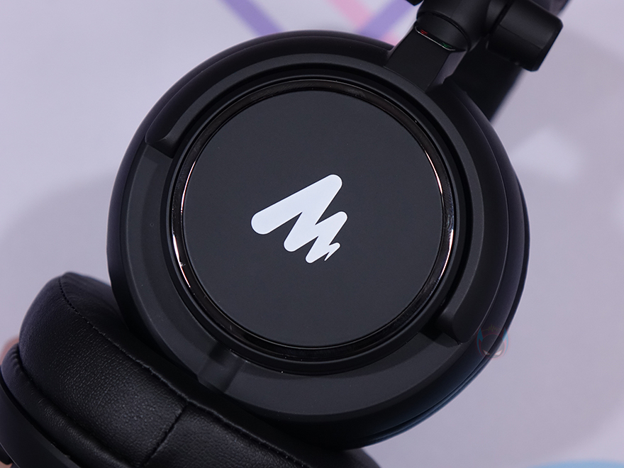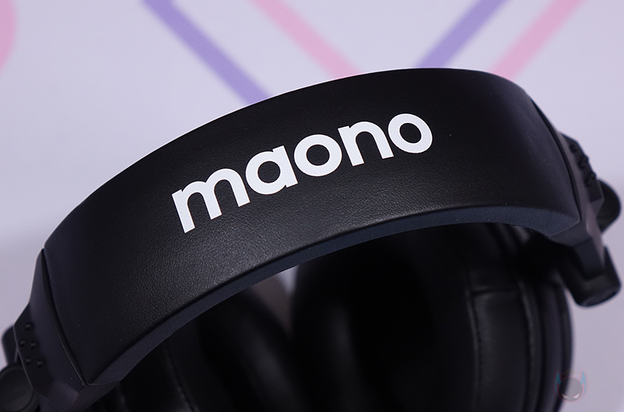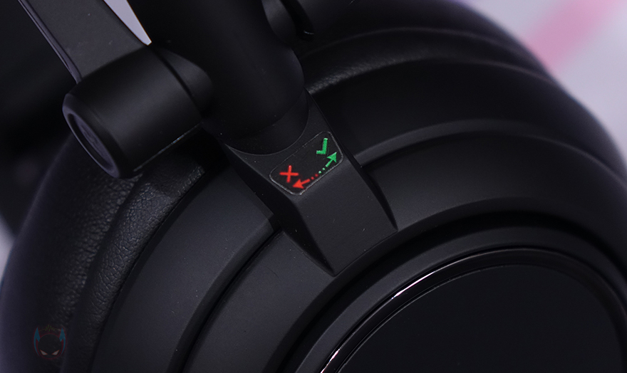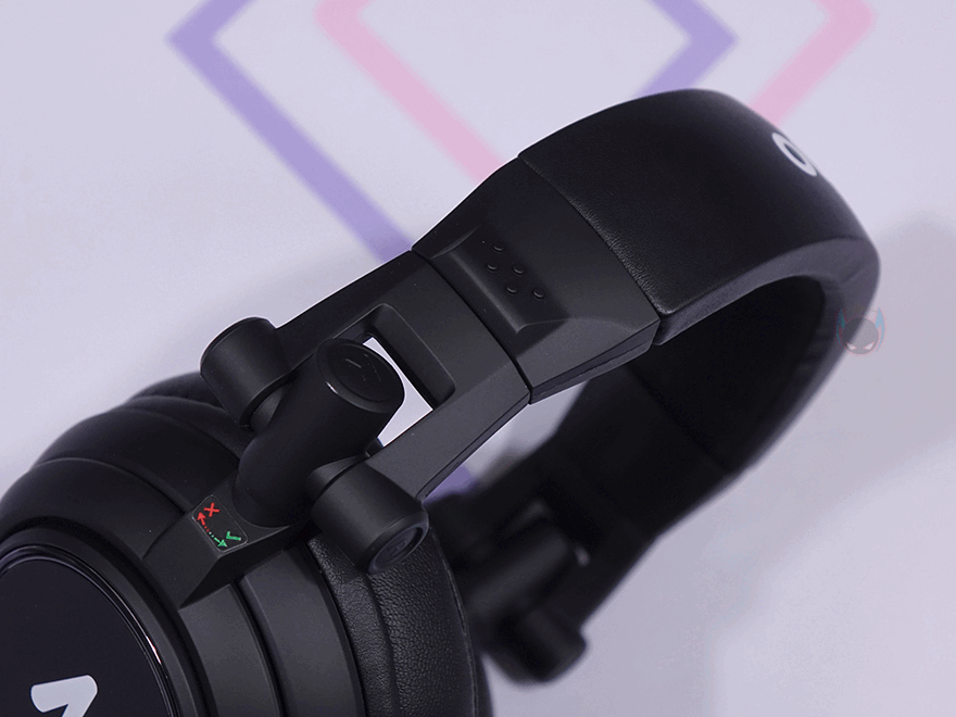 마오노(MAONO) AU-MH601 헤드셋을 본격적으로 살펴보면, 전체적은 색상은 블랙이며, 뒤에서 다시 언급하겠지만, 이어-컵 부분의 부분 색상을 통해 블랙/그레이/레드(Black/Gray/Red) 3가지 색상으로 나왔습니다. 좀 더 자세히 살펴보면, 헤드밴드(Headband)는 안쪽에 편안한 착용감을 위해 패브릭 재질과 함께 쿠션을 적용했으며, 바깥쪽은 MAONO 로고(Logo)를 새겨놨습니다. 물론, 밴드 길이도 가능한데, 7단계로 최대 33mm까지 늘릴 수 있죠. 또한, 밴드와 이어-컵(Ear-cup) 연결부위에는 좌우(L/R) 표기를 해놨으며, 이어-컵을 수평 90˚로 회전할 수 있다는 방향표시도 확인할 수 있습니다. 실제로 이어-컵을 수평으로 회전하면 자동으로 다시 제자리 돌아가는 것을 확인할 수 있습니다.