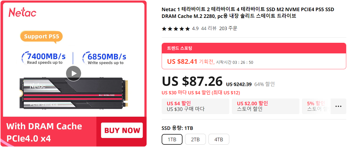(할인예상가: 결제할인+할인코드: 23TS7 = $78달러)