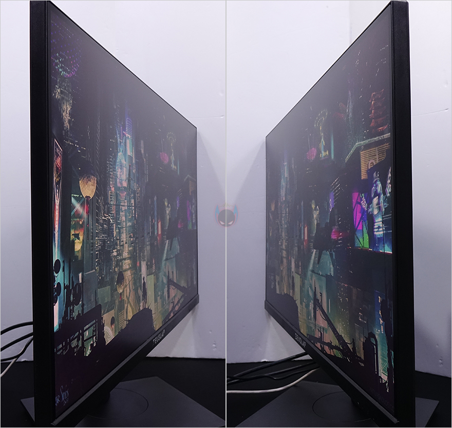 그리고, 조립 후에는 사용 전에 모니터 패널에 개봉 시 보호비닐이 부착되어 있기 때문에 제거를 해줘야 하고, 보호비닐을 제거하면 패널이 빛반사가 거의 없는 논-글레어(Non-Glare)라는 것을 확인할 수 있죠. 참고로, 이번 27인치 게이밍 모니터에 사용된 패널은 IPS패널입니다.