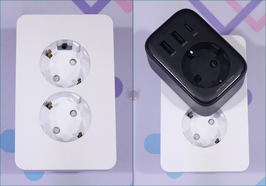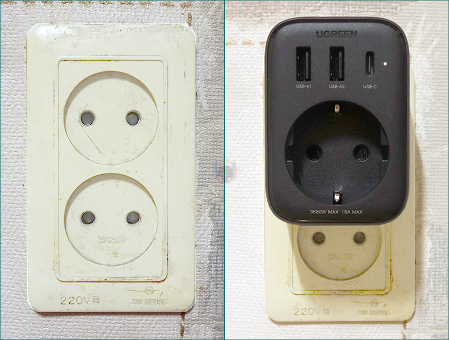 직접 유그린(Ugreen) Outlet Extender 전원 스트립을 사용해보면, 일단 콘센트에 바로 꽂는 형태이기 때문에 1구 콘센트에선 당연히 간섭 없이 사용이 가능하죠. 그래서, 2구이상의 콘센트에서 간섭 여부를 먼저 확인해 봤는데, 콘센트 방향이 대각선일 경우에는 나머지 1구와 간섭이 발생하기 때문에 추가적인 플러그를 꽂을 수 없습니다. 하지만, 수평 일자의 2구 콘센트 같은 경우에는 Outlet Extender를 꽂아도 수평 일자형 플러그는 나머지 1구에 꽂을 수 있죠. 물론, 그외에 원형이나 어댑터 형식의 플러그는 꽂을 수 없죠. 멀티탭에서 사용할 때도 조건은 마찬가지입니다. 즉, Outlet Extender 전원 스트립은 1구 콘센트에서 사용할 때 가장 활용성이 크다할 수 있겠습니다.