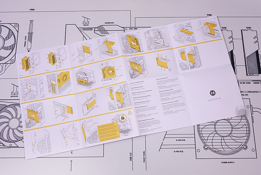 PC케이스 포장 역시 먼저 나왔던 다른 색상 모델들과 마찬가지로 외부 충격방지를 위한 스티로폼 완충재 사용과 비닐 포장을 적용했으며, 부속품들은 별도의 박스 포장에 담아서 제공해주는데, 부속품들 역시 동일하게 EAR/MIC Y자 케이블, 부품 장착에 필요한 나사들, 제품설명서로 이루어져 있습니다. 물론, 제품 설명서도 그대로 컬러 인쇄물로 초보자가 쉽게 이해할 수 있도록 유지했죠.