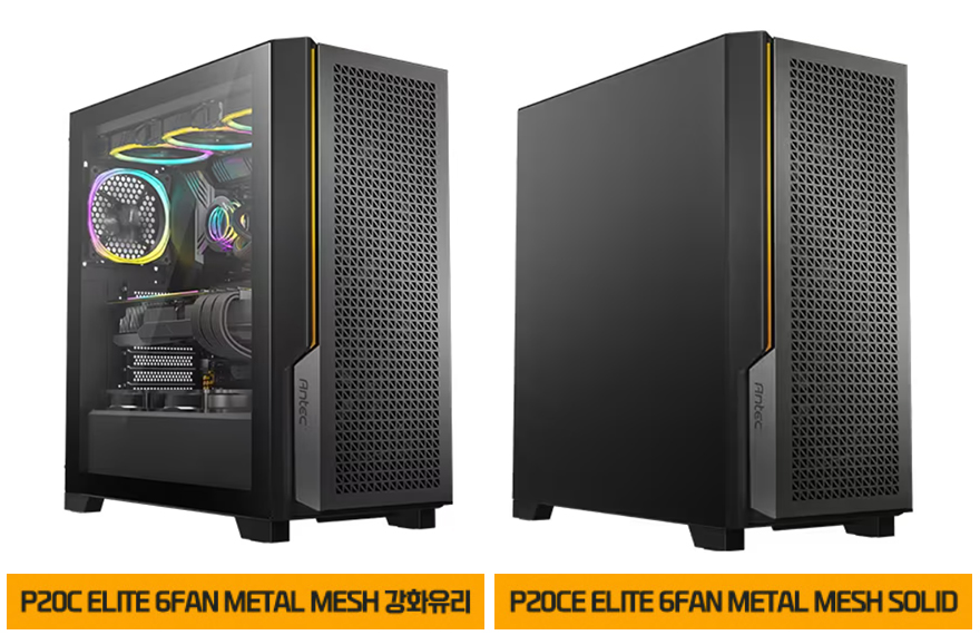 국내에서도 PC케이스와 파워서플라이로 유명한 안텍(Antec)은 올해로 37주년을 맞이하고 있죠. 현재 안텍은 PC케이스, 파워서플라이를 비롯해 쿨링, 메모리, 게이밍 의자까지 확장되었지만, 그래도 여전히 주력은 PC케이스라 할 수 있죠. 그래서, 안텍에는 다양한 시리즈의 PC케이스 라인업을 갖추고 있는데, 국내뿐만 아니라 해외에서도 가장 유명한 라인업 중 하나가 바로 P 시리즈입니다. 초창기에는 퍼포먼스 시리즈라고 풀네임 그대로 사용했지만, 지금은 그냥 줄여서 P 시리즈라고 명하고 있죠. P 시리즈가 유명한 이유는 명칭 그대로 퍼포먼스에 해당되는 디자인/쿨링/품질/가격의 밸런스를 가장 잘 갖추고 있기 때문입니다. 쉽게 말해, 어느 한쪽으로 특화되지 않은 거죠. 그리고, 이런 P 시리즈의 가장 최근 모델이 바로 P20C/P20CE ELITE 케이스인데, P20C는 측면이 강화유리, P20CE는 측면이 샤시패널로 적용된 경우죠. 또한, 최근에는 국내시장 트렌드에 맞춰서 팬 6개를 기본 포함한 제품까지 나왔습니다. 그래서, 이번 시간에는 이 중 강화유리가 적용되고 팬 6개를 기본으로 갖춘 P20C ELITE 6FAN 모델을 한 번 만나보도록 하겠습니다. 그럼,