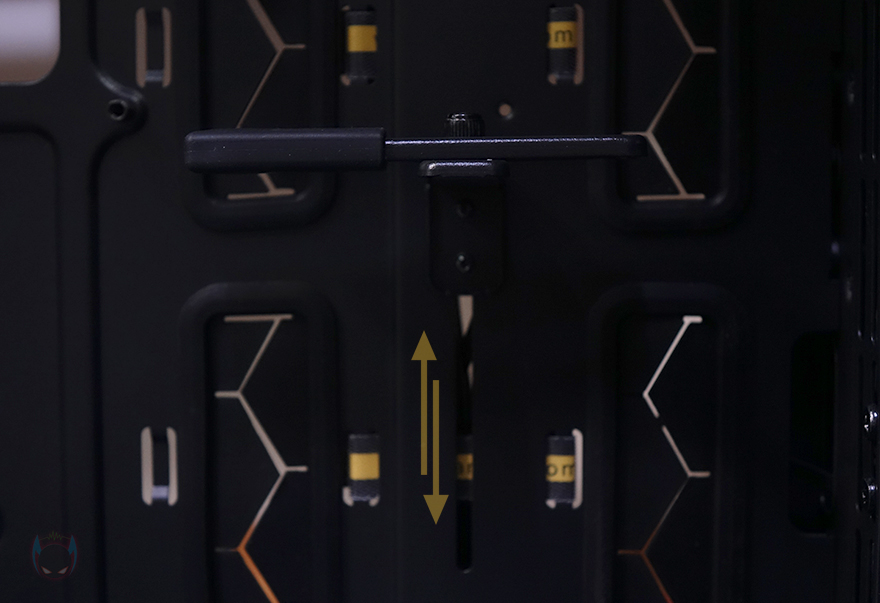 후면 PCI 슬롯가이드는 모두 재상용이 가능한 착탈식이며, 메인보드가 장착되는 트레이에는 그래픽카드 지지대도 기본 장착되어 있는데, 위로 높이조절은 물론이고, 분리해서 보면 받침 부분도 좌우/앞뒤로 위치조절할 수 있게 갖추고 있습니다. 또한, 고무패킹을 사용해서 그래픽카드에 손상이 없도록 하고 있죠.