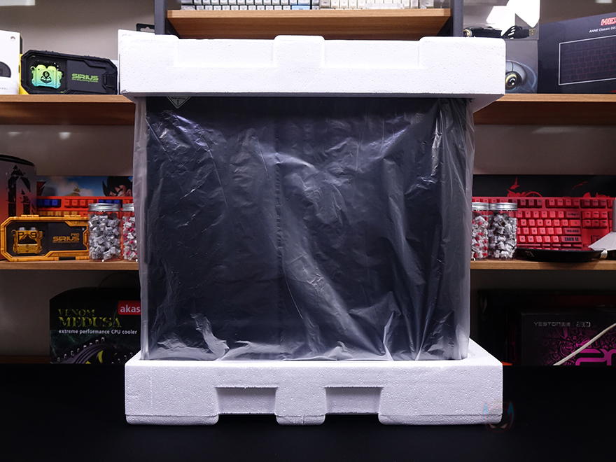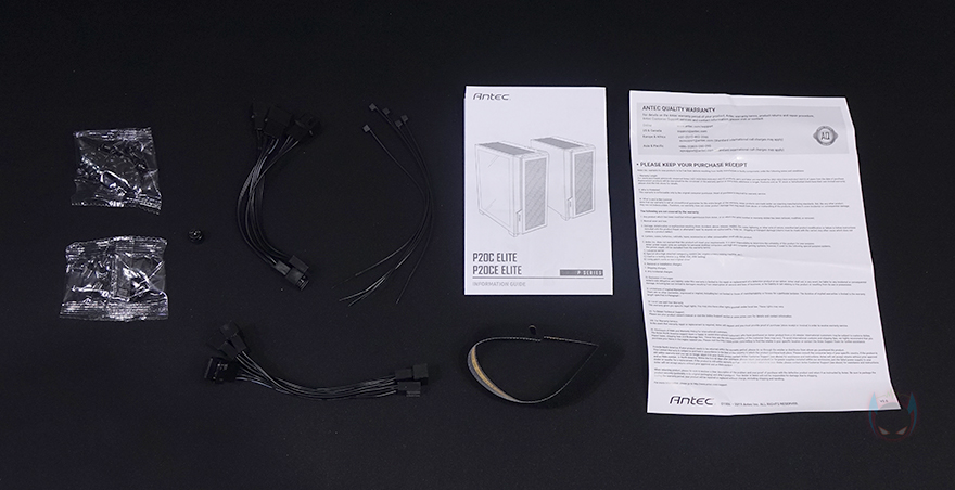 제품 포장은 다른 PC케이스 제품들과 마찬가지로 케이스는 기본 비닐포장에 외부 충격방지를 위해 스티로폼 완충재가 사용되었습니다. 그리고, 부속품들은 분실이 되지않게 별도의 박스 포장을 하고 있으며, 부속품에는 메인보드 및 저장장치 등 부품장착에 필요한 나사들, 동시에 팬 3개를 연결할 수 있는 스플리터 케이블 2개, 소량의 케이블타이와 벨크로 타이, 제품설명서 및 보증서로 이루어져 있습니다.