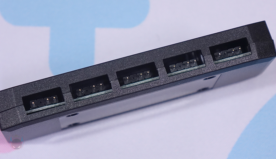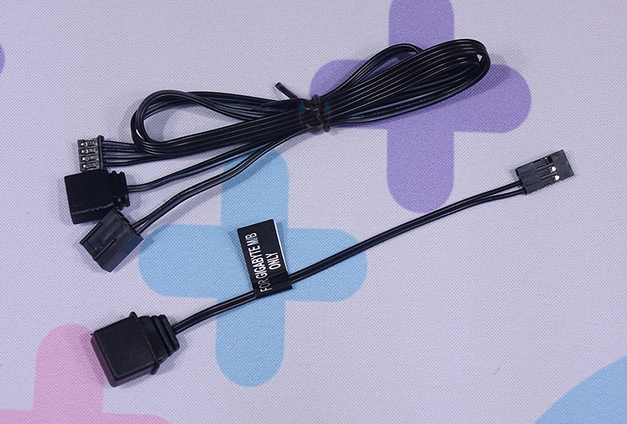 끝으로, Fusion 120 ARGB 3Pack 제품 구입 시 들어있는 컨트롤 박스는 중간에 큼지막한 로고와 함께 좌우로 LED 속도조절과 모드 변경 버튼이 배치되어 있으며, 측면 한쪽에는 팬 5개, 반대쪽 측면에는 LED 5개를 연결할 수 있게 포트를 갖추고 있습니다. 그러니깐 총 5개의 팬이 연결되는 거죠. 참고로, 컨트롤박스 전원연결은 SATA 방식이며, 후면에는 함께 제공되는 벨트로타이를 부착해서 사용하면 탈부착이 가능하며, 케이블은 5V ARGB와 PWM 4핀 케이블, 기가바이트 초창기 ARGB 메인보드에 적용되던 VDG 방식으로 연결할 수 있게 젠더 케이블도 제공하고 있습니다.