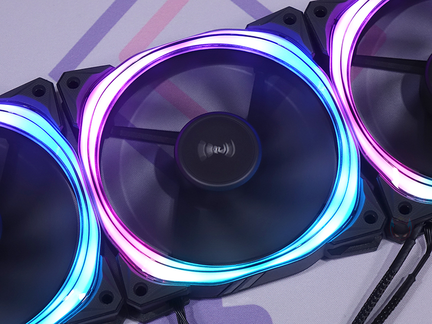기존 링 디자인 케이스 팬과는 확실히 차별화를 두고 출시한 안텍(Antec) Fusion 120 ARGB 케이스 팬은 크리스탈 느낌의 링 디자인으로 기존에 보던 단조로운 링 디자인 케이스 팬보다 고급스러운 느낌을 줍니다. 특히, 이중레이어와 함게 RGB LED 조명이 발산되면 윤곽이 구분되는 패널라인이 크리스탈 감성을 제대로 표현해 주죠. 물론, 3Pack 제품을 구매했을 때는 컨트롤박스까지 제공해 주기 때문에 메인보드 RGB Sync 지원이 없더라도 자체의 다양한 모드를 즐길 수 있죠. 물론, 메인보드 RGB Sync와 연동하면 더 일체감 있는 시각화를 누릴 수 있습니다. 또한, 단순히 디자인에서만 고급형이 아니라 팬 속도도 RGB LED 팬으로선 최상급에 속하는 2000 RPM을 지녔기 때문에, RGB 감성의 조립 PC를 구상하면서 동시에 쿨링까지 신경 쓰고 싶다면, 안텍 Fusion 120 ARGB 케이스 팬을 추천합니다.