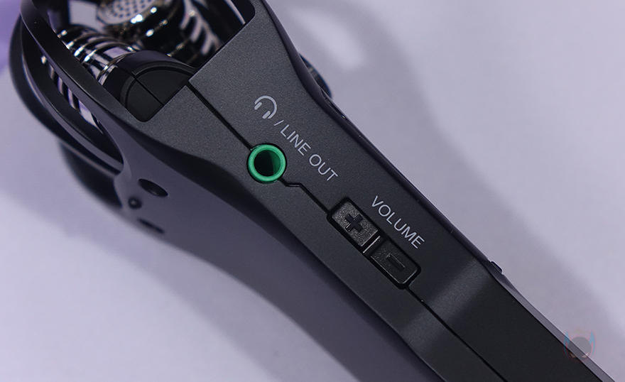 이 외에도 마이크 오른쪽 측면에는 외부 마이크를 연결해서 사용할 수 있게 Line In 포트가 있는데, 이때는 H1n이 일종의 오디오 인터페이스 역할을 하게 됩니다. 그리고, 그 아래에는 마이크로 SD/SDHC 메모리 카드를 삽입하는 공간이 있으며, 아랫쪽에는 전원/녹음버튼 잠금을 할 수 있는 스위치, 파일삭제 버튼, 그리고 외부 보조배터리를 연결할 수 있게 마이크로 5pin USB 포트가 배치되어 있죠. 반대쪽 측면에는 녹음 상태를 모니터링할 수 있게 헤드폰 3.5mm 포트가 배치되어 있으며, 아래에는 볼륨 조절 버튼이 적용되어 있습니다.