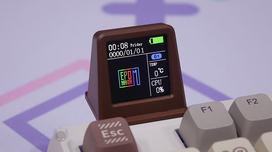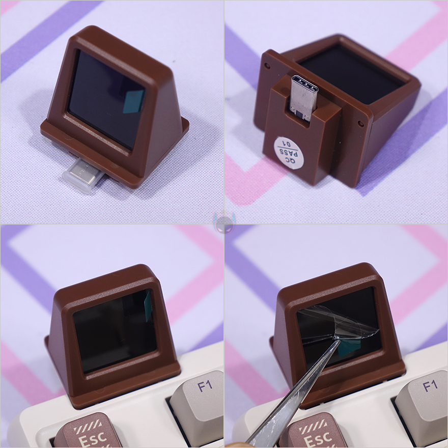 분리형으로 제공되는 스마트 스크린 디스플레이는 1.33인치 화면 크기에 베젤 색상 역시 키보드 콘셉트에 맞춰서 브라운(Brown) 색상을 적용했으며, 아래에 USB Type-C 인터페이스가 적용되어 있는데, 사용하지 않을 시에는 인터페이스 보호를 위해 덮개도 제공되고 있습니다. 물론, 개봉시에는 보호비닐도 부착되어 있기 때문에 사용 전에 떼줘야 하죠.
