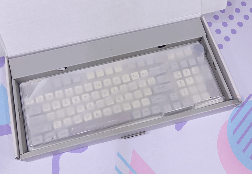 박스를 열어보면, RT100 키보드 크기에 맞춘 얇은 루프(Roof) 제공과 함께 포장은 기본방식이 비닐 포장으로 처리되어 있으며, 나머지 구성품들도 비닐 포장으로 되어 있습니다. 특히, 디스플레이인 스마트 스크린은 한 번 완충재를 사용해 파손방지를 하고 있죠. 제품구성은 RT100 키보드, 루프, 분리형 USB 전원 및 충전 케이블, 스위치&키캡 리무버, 스마트 스크린 디스플레이, 제품설명서로 이루어져 있습니다.
