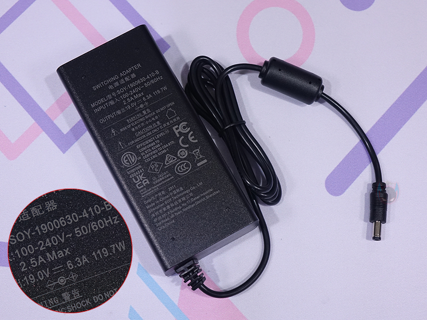 끝으로, UM773 Lite 미니 PC를 다른 미니 PC 제품들처럼 그냥 바닥에 놓고 사용해도 되지만, Minisforum은 세워서도 사용할 수 있게 전용 스탠드(Stand)를 제공해주고 있습니다. 스탠드 바닥에는 미끄럼방지 패드를 부착해 놨으며, 세워서 사용할 시 진동 소음을 줄이도록 실리콘 패킹도 적용되어 있죠. 그리고, 제공되는 전원어댑터의 최대 출력 전력은 약 120W이며, 제공되는 HDMI 케이블은 약 57.5cm 길이에 신호손실을 최소화하기 위해 금도금처리를 했으며, 사용하지 않을 시 부식방지를 위해 기본 덮개도 제공해주고 있습니다.