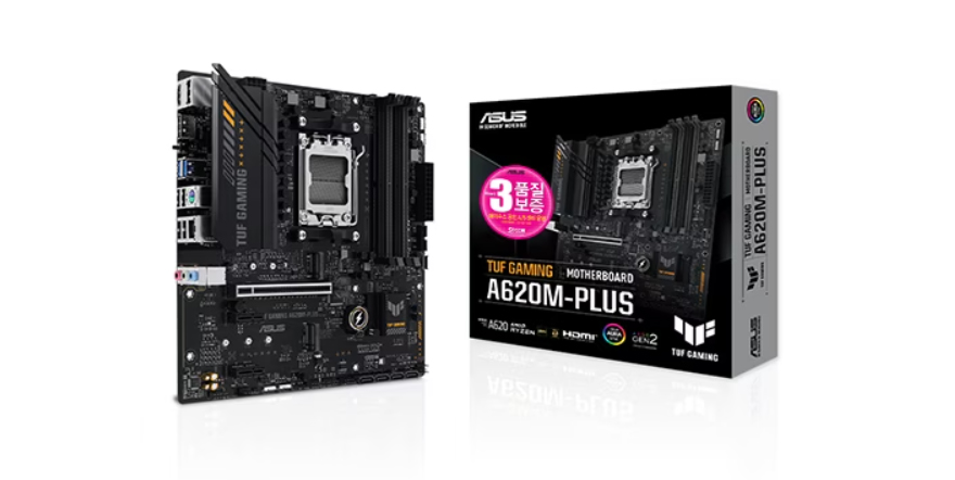 AMD가 Zen4 아키텍처의 라이젠 7000 시리즈 CPU를 출시하면서, 이를 지원하는 새로운 메인보드 X670과 B650 칩셋 제품들도 나왔습니다. 특히, 이전과 달리 X670과 B650 칩셋은 기본 모델 외에 익스트림 모델이 추가되면서 X670E, X670, B650E, B650으로 세분화되었죠. 이렇게 되면서 라이젠 7000 시리즈를 지원하는 고급형과 중급형 메인보드는 모두 가격이 상승했습니다. 그래서, 소비자들이 최신 AMD CPU로 조립 PC를 구상하고 싶어도 메인보드에서 확실히 예전보다 가격부담을 크게 느끼고 있죠. 물론, AMD 역시 이런 부분을 잘 알고 있어서, 이를 해소할 수 있는 시기는 최하위 칩셋 A620의 출시라고 언급을 했고, 지난달부터 A620칩셋 메인보드가 출시되기 시작했습니다. ASUS 역시 다양한 A620칩셋 메인보드를 내놨는데, 오늘은 그중 TUF Gaming 라인업의 A620M-PLUS 모델을 한 번 살펴볼까 합니다. 그럼,