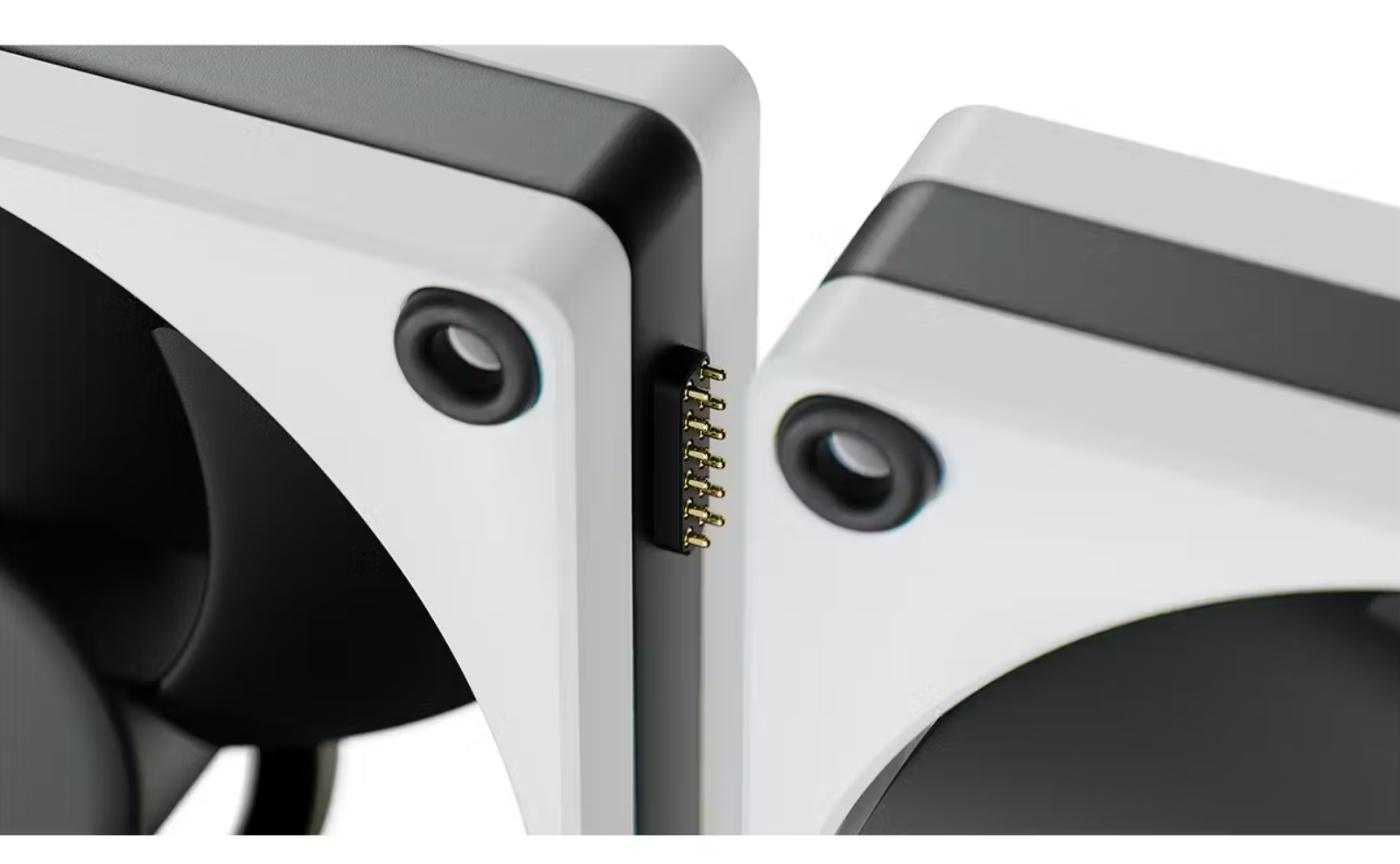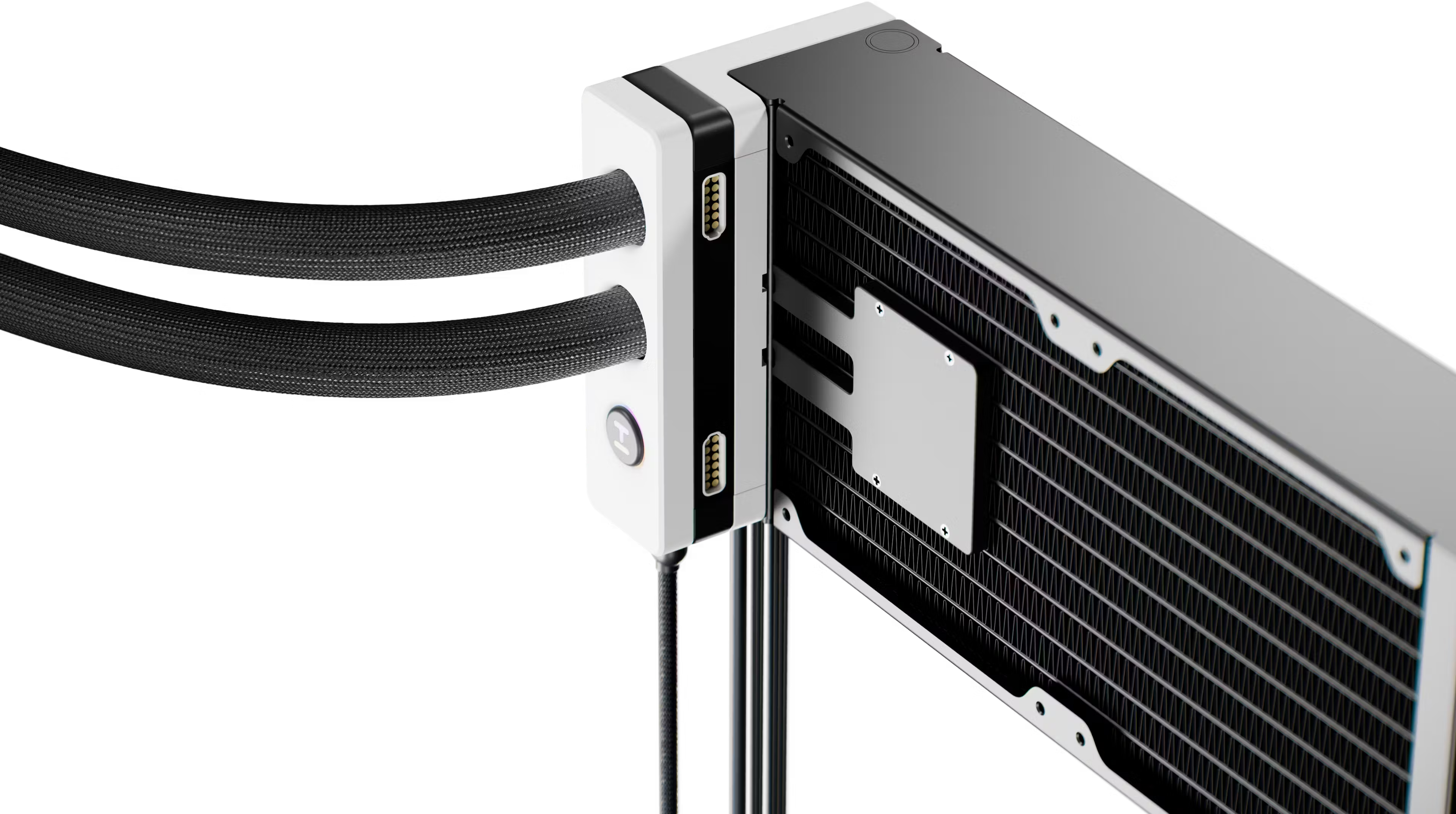 THICC Q60 일체형 수랭쿨러는 워터블록 위에 마치 공중부양처럼 5인치 디지털 디스플레이를 적용했다. 그리고, 디스플레이 후면은 RGB 조명효과를 담고 있다. 확실히 기존 일체형 수랭쿨러에선 볼 수 없었던 디자인이며, 라디에이터에 장착된 120mm 팬 역시 HYTE의 새로운 모델 THICC FT12라는 모델로 팬 두께가 32mm다. 특히, 이 팬에는 케이블이 없고 라디에이터 한쪽에 팬과 접촉되는 접지 장치 적용했다. 또한, 이번 신제품들과 함께 HYTE가 선보이는 하드웨어 소프트웨어 Nexus Link와 연동된다.