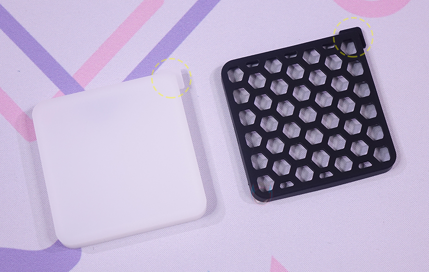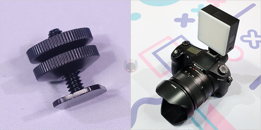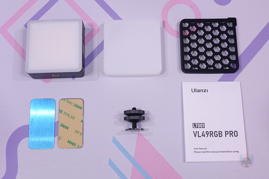 이 외에도 VL49 RGB Pro 미니 조명에 기본적으로 커버가 적용되어 있지만, 좀 더 은은한 빛 효과를 위해 디퓨저(Diffuser), 그리고 좀 더 어두운 빛 효과를 위해 벌집모양(Honeycomb) 커버를 제공해주고 있는데, 바로 조명부분에 끼워서 사용하면 됩니다. 이 밖에도 1/4인치 핫슈마운트가 제공되기 때문에 카메라에 장착해서 사용할 수도 있죠.