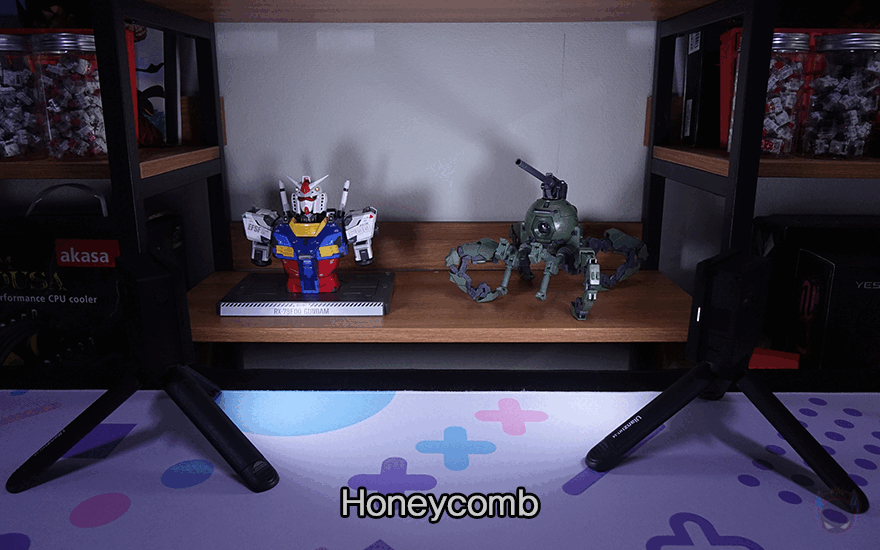 VL49 RGB Pro가 미니 조명 제품인 만큼 1인 촬영이나 피규어 같은 소형 소품 촬영에 사용하기에 적합하다 할 수 있어서, 실제 VL49 RGB Pro 미니 조명 2개를 삼각대에 장착해서 촬영해 봤습니다. 색온도에 따라서 확연한 밝기 느낌과 HSI 조절을 통한 다양한 RGB 조명, 그리고, 다양한 조명 모드를 통해 소품 촬영 시 다양한 연출이 손쉽게 가능했습니다. 미니 조명인만큼 작은 공간에서 촬영하기에 최적의 조명이라 할 수 있습니다. 이 외에도 앞서 확인한 디퓨저(Diffuser)와 벌집모양(Honeycomb) 커버를 사용했을때도 밝기에 차이가 분명히 있기때문에 사용자가 선택해서 사용하면 되겠습니다.