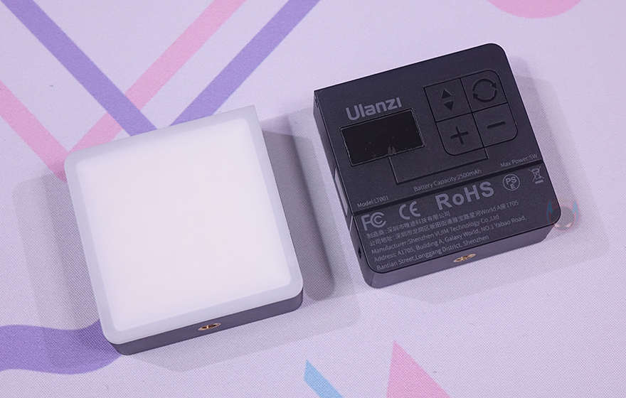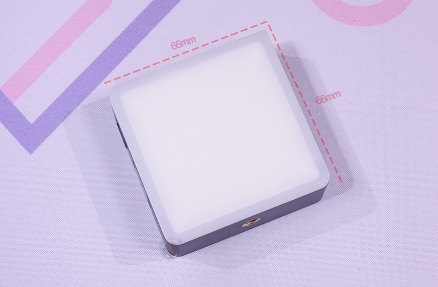 Ulanzi VL49 RGB Pro 미니 조명을 살펴보면, 한 모서리를 제외하고 라운딩처리를 한 정사각형 모양으로 크기는 66x66mm입니다. 일상생활에서 필수로 휴대하는 스마트폰과 비교해 봐도 사이즈가 훨씬 작고 무게도 약 122g 수준으로 휴대성에 있어서는 최적이라 할 수 있죠. 사실상 미니 조명이자 동시에 포켓 조명이기도 합니다. 그리고, 전면 LED 빛이 나오는 부분에는 기본적으로 반투명 커버를 적용하고 있죠. 참고로 내부에는 White LED 20개, Yellow LED 20개, RGB LED 20개가 들어있습니다.