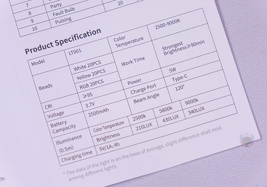 미니 조명 제품답게 제품박스도 작은데, 일단 박스 전체가 밀봉처리되어 있어서 소비자입장에선 판매 제품에 신뢰를 가질 수 있습니다. 그리고, 박스 전면에 모델명과 함께 제품 이미지를 담고 있어서 한눈에 조명 제품 디자인을 미리 알 수 있죠. 또한, 박스 측면에는 제품의 주요 특징 3가지를 표기해 놨는데, 색온도, 배터리용량, 색조와 채도로 조절하는 RGB 조명을 언급해 놨죠. 박스를 열어보면, 외부 충격방지와 흔들리지 않게 VL49 RGB Pro 조명 제품에 스펀지 포장재가 사용되었으며, 제품구성은 VL49 RGB Pro 미니 조명, 디퓨저(Diffuser), 벌집모양의 커버(Honeycomb cover), 자석부착을 위한 철판(Iron Sheet) 2개, 1/4인치 핫슈 마운트, 제품설명서로 이루어져 있습니다. 물론, 제품박스에서 확인할 수 없었던 제품의 기본 사양은 설명서에서 확인할 수 있죠.