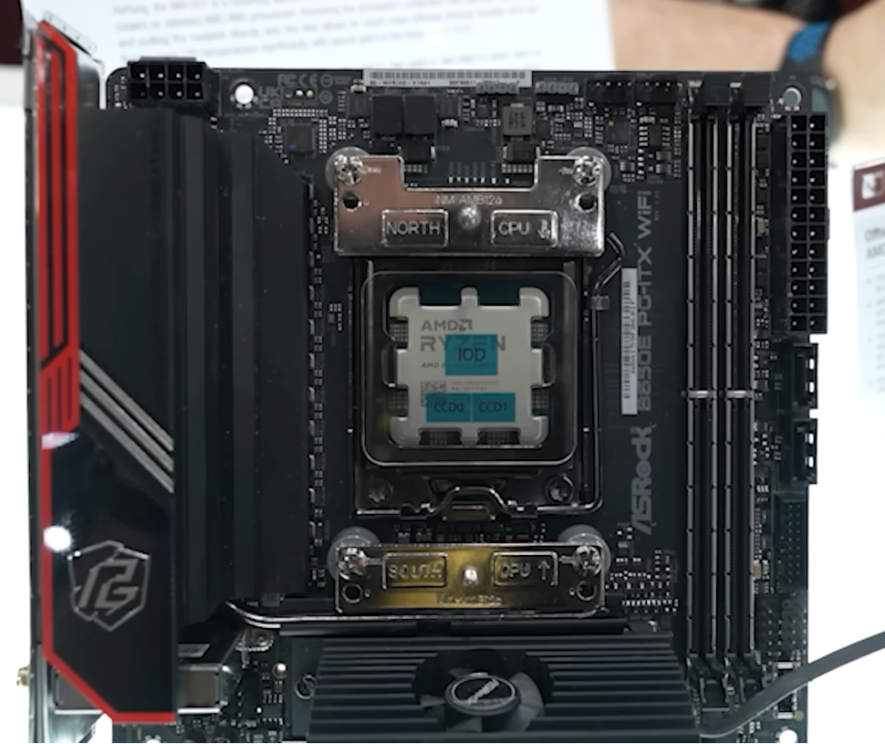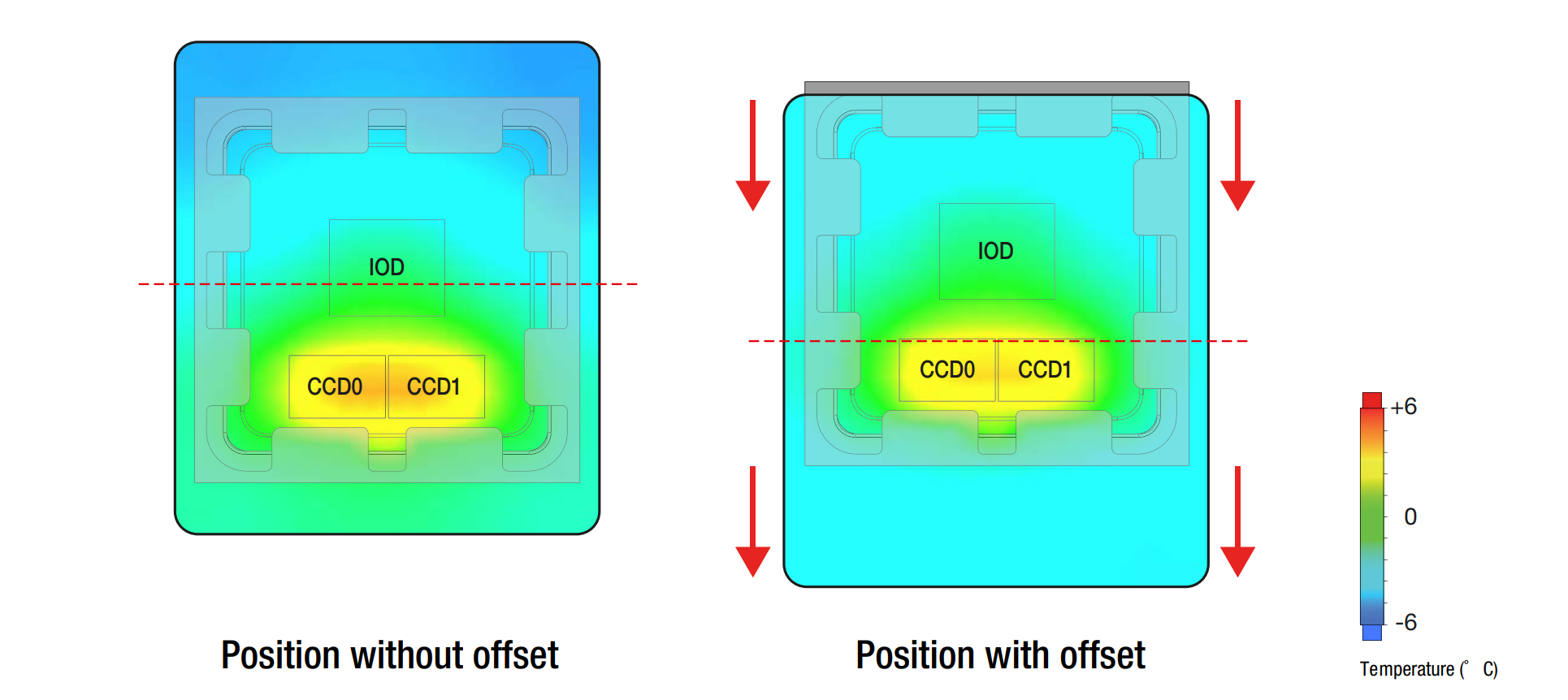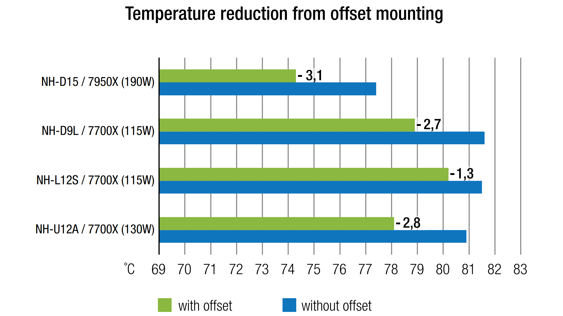 이 밖에 새로운 제품으로 AMD AM5 소켓에 사용되는 마운트를 공개했는데, 기존 AM5 마운트가 쿨러를 CPU 중앙에 위치시켰다면, 이 새 마운트를 사용했을 시 쿨러는 AMD AM5 CPU의 CCD 위치에 맞춰서 자리 이동이 된다라는 점이다. AMD 라이젠 7000 시리즈는 CCD가 2개 들어있기때문에 이부분에 발열이 가장 심한데, CCD 위치가 IOD 아래에 위치했기때문에 이부분에 맞춰서 쿨러 베이스 중앙을 위치 이동시키는거다. 실제로 이 마운트를 사용해서 쿨러 베이스를 CCD 위치로 이동시켰을 때 냉각성능을 보면 일반 위치보다 1~3˚온도가 더 낮아진 것을 녹투아에서 데이터자료로 공개하고 있다. 참고로, 이 새 AM5 마운트는 올해 말부터 제공될 예정이며, 2005년이후부터 출시한 녹투아 쿨러 대부분에 호환이 된다.