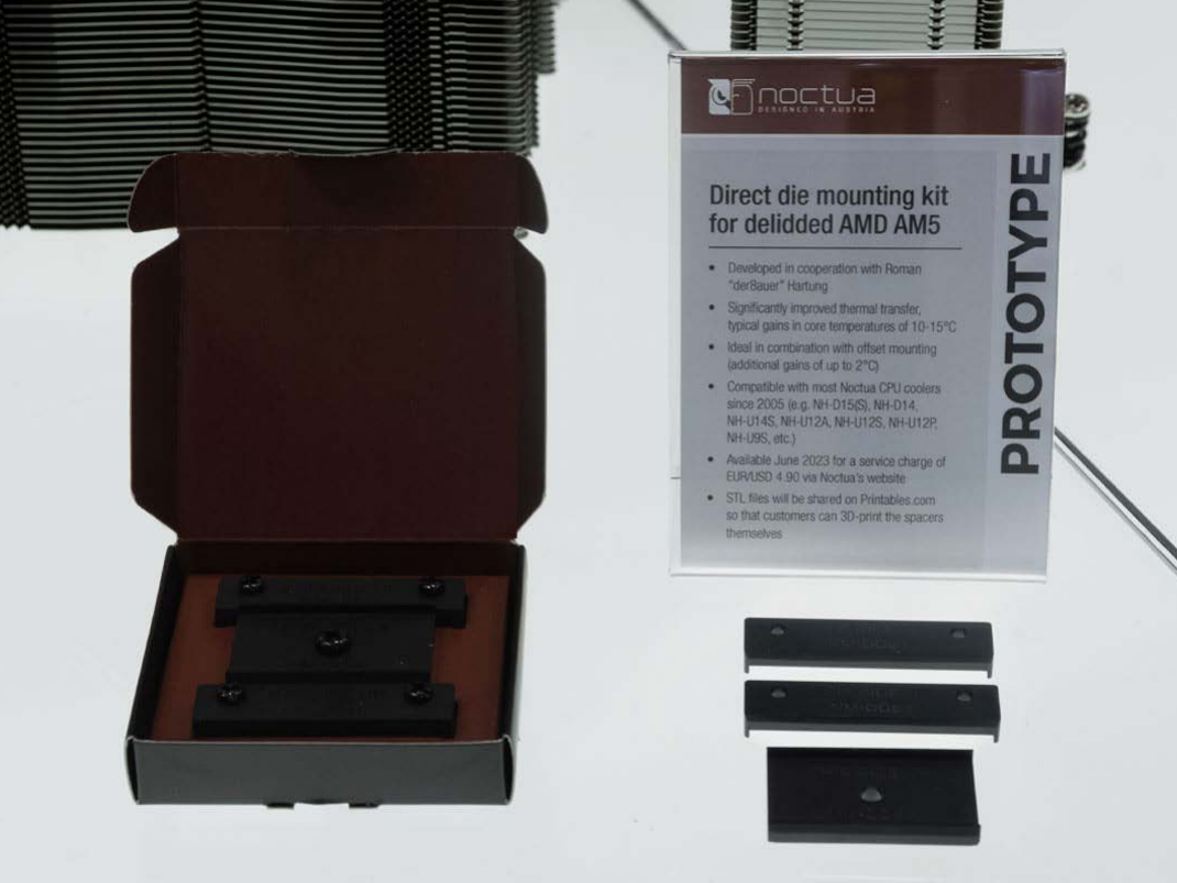 이 밖에도 CPU 코어와 히트스프레더를 분리시킬 때 사용하는 키트. 일명 뚜따 키트로 유명한 der8auer와 협력해 AMD 라이젠 7000 뚜따 CPU 다이에 바로 장착할 수 있게 해주는 마운트 제품도 공개를 했으며, 올해 4분기에는 chromax.black 라인업에 NH-D12L, NH-D9L, NH-L9x65 모델이 출시될 예정이며, 역시 같은 4분기에 AMD 쓰레드리퍼 전용 쿨러, 24V 전압의 40mm 팬 NF-A4x10, 15mm 두께의 60mm A-시리즈 팬도 4분기에 출시 예정으로 공개되었다.
