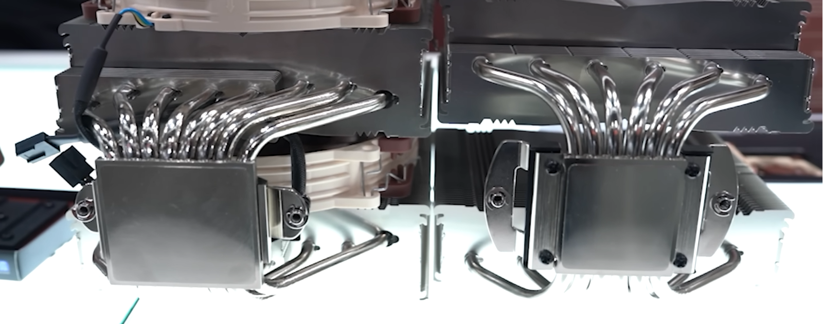 그리고, 이 차세대 A-시리즈 140mm 팬을 장착해서 출시할 쿨러가 공개되었는데, 바로 공랭쿨러의 끝판왕으로 불리던 NH-D15의 후속 2세대 NH-D15다. 역시 프로토타입이지만, 기존 NH-D15와 가장 큰 차이점은 히트파이프가 2개 더 늘어난 8개가 적용되었다라는점이다. 그리고, 그만큼 CPU와 맞닿는 베이스부분도 넓어졌다. 출시는 내년 2024년 2분기 예정.