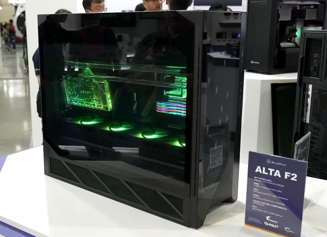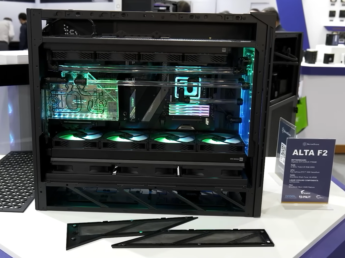 이 밖에도 가장 최근에 출시된 ALTA의 후속 모델 ALTA F2도 공개를 했는데, 커스텀 수랭쿨러로 전시를 했다. ALTA F2는 기존 ALTA F1보다 한층 더 강화된 자유로움으로 그래픽카드를 수평/전면 수직/측면 수직 방향으로 장착할 수 있으며, 180mm 팬을 최대 3개까지 내부 하단에 장착할 수 있다.