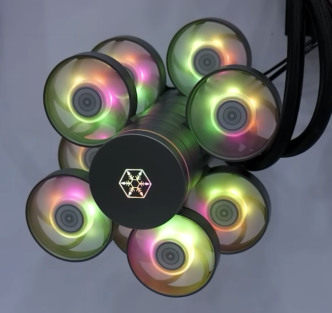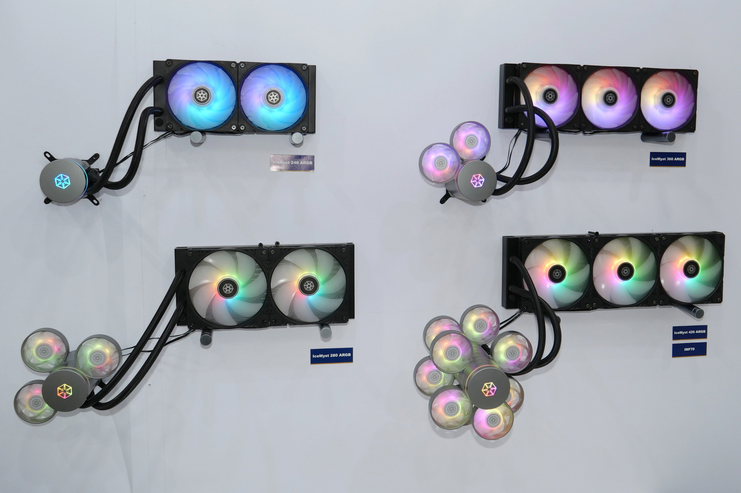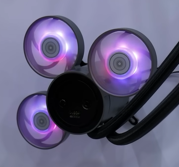 그리고, 새로운 일체형 수랭쿨러 제품도 공개를 했는데, IceMyst라는 모델로 출시된 이 제품은 기존 일체형 수랭쿨러에서 가장 많이 언급되는 단점 주변 쿨링효과가 없는 점을 해결했다. 바로, 워터블록에 팬을 다수 추가할 수 있게 했다. 접지 방식으로 워터블록 뚜껑을 분리해서 역시 접지방식의 팬을 층층으로 올려서 추가할 수 있다. 이렇게 하면 워터블록 주변 즉, 메인보드의 전원부, M.2 SSD, 메모리 슬롯까지 쿨링효과를 줄 수 있다. IceMyst 일체형 수랭쿨러는 240/280/360/420mm 총 4가지 라디에이터 사이즈로 출시될 예정이다.