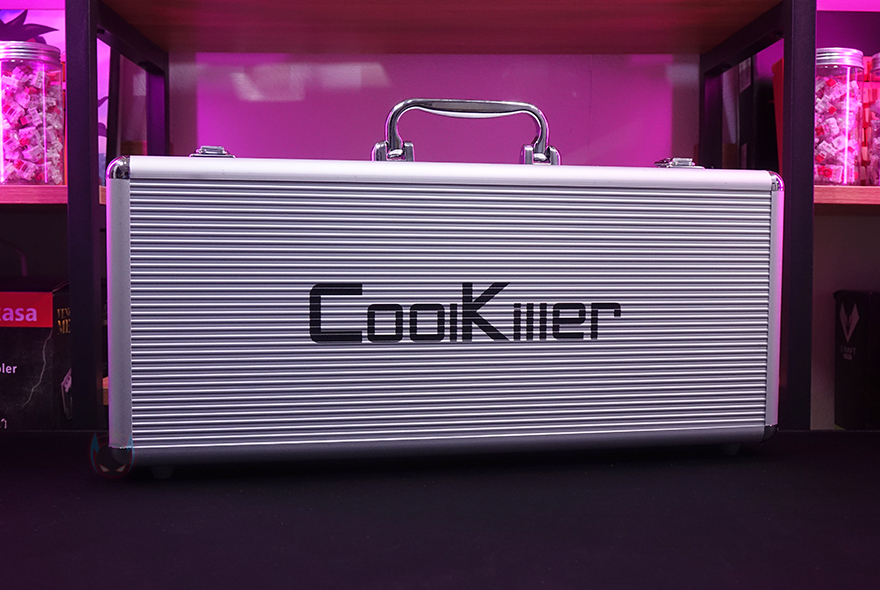 그래서, 리뷰에선 알루미늄 박스(Aluminum Box) 제품으로 살펴볼 텐데, 기본 패키지형태는 종이박스이며 종이 박스를 열어보면, 에어캡과 함께 CK98 키보드(keyboard)가 들어있는 알루미늄 박스를 확인할 수 있습니다. 알루미늄 박스는 어느 제품들에서 고급형 제품일 때 보관과 동시에 파손방지를 위해 최상급 박스로 사용되는 경우가 많죠. CK98 키보드도 여기에 해당한다고 보면 됩니다. 알루미늄 박스(Aluminum Box) 전면에는 'CoolKiller' 로고(Logo)를 새겨놨으며, 후면에는 박스를 눕혀 내려놨을 때 미끄럼방지와 흠집방지를 위해 패드 받침대를 적용하고 있습니다. 물론, 이동 편의를 위해 손잡이는 기본적으로 달려있죠.