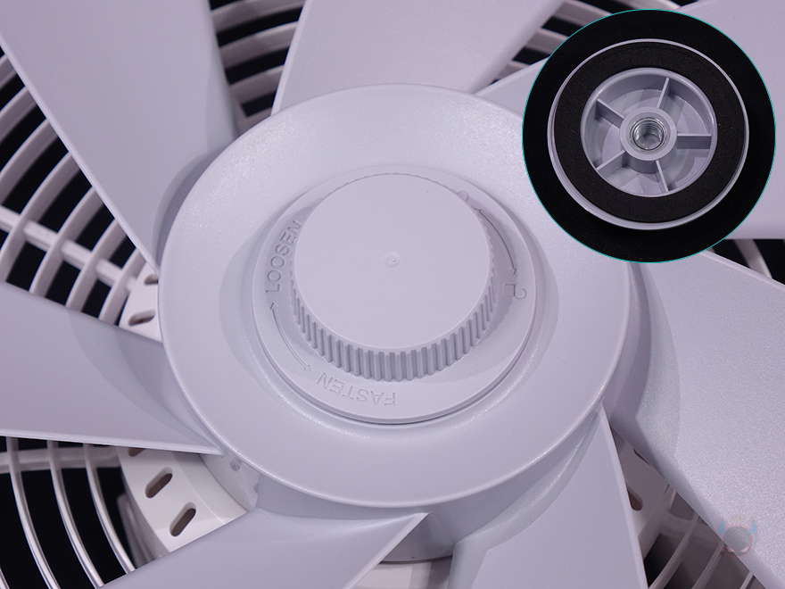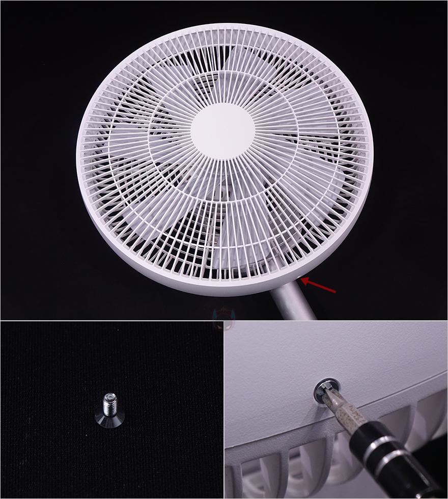 이번엔 팬(Fan) 날개를 조립하는데, 역시 개봉 시 팬 포장을 분리하면 안에 날개가 움직이지 않도록 종이 포장재를 사용하고 있으며, 팬과 날개 조립 역시 기존 제품들과 크게 다르지 않습니다. 먼저, 팬 후면 커버를 스탠드 상단에 위치한 모터에 끼워준 후, 제공되는 팬 고정 노브를 사용해 후면 커버를 고정해 줍니다. 그리고, 모터 회전축과 날개 후면 홈 축에 맞춰서 역시 끼워준 후, 날개 고정 노브를 사용해 고정해 주죠. 특히, 노브 안쪽에는 흠집 방지를 위해 얇은 패드를 부착해 놨습니다. 그리고, 최종적으로 전면 커버를 끼워준 후, 역시 제공되는 나사를 사용해 커버 고정을 해주면 조립이 마무리됩니다.