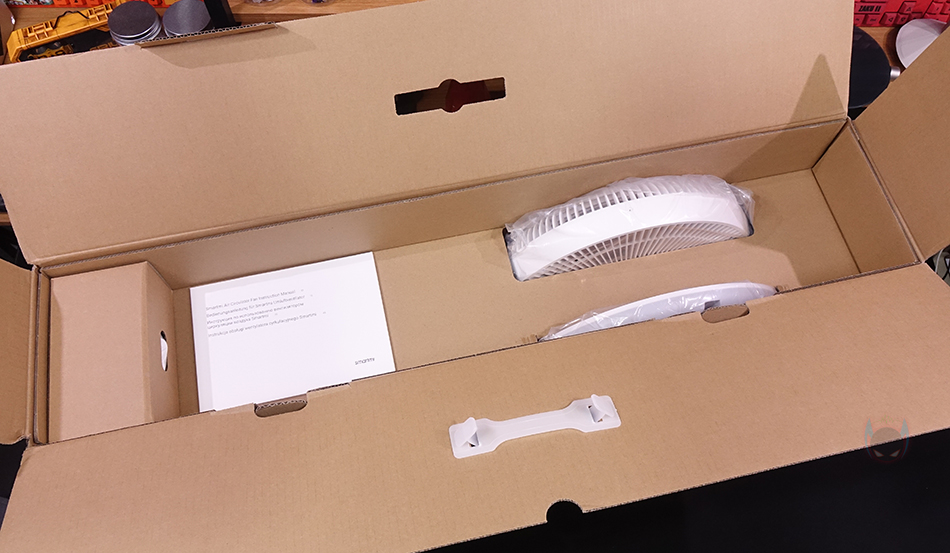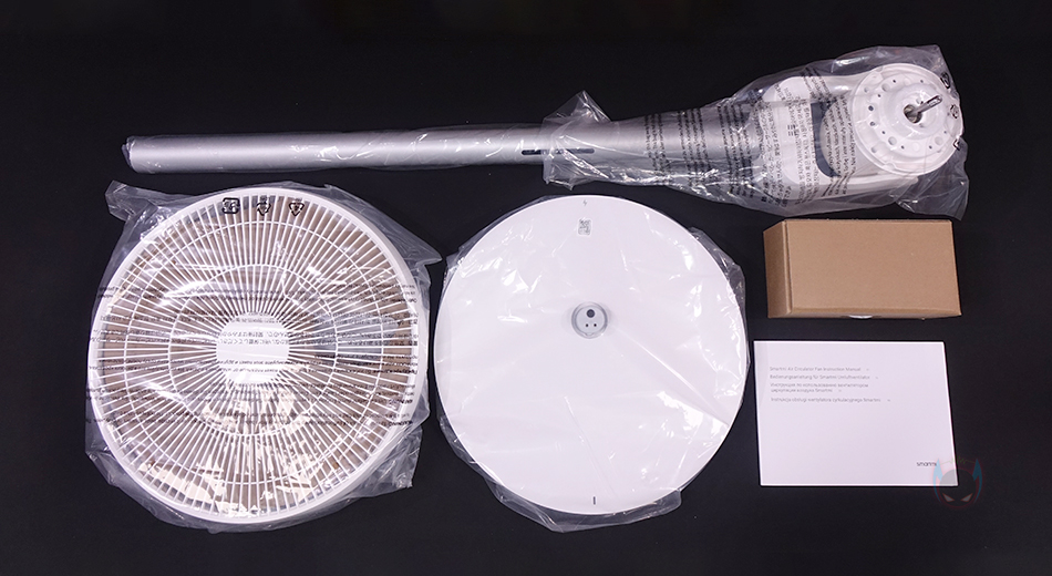 박스를 열어보면, 포장은 기존의 Fan 시리즈(series)와 비슷한 형태이며, 종이 포장재로 흔들리지 않게 했으며, 구성품들은 모두 비닐 포장과 부속품은 별도의 박스 포장을 해놨습니다. 부속품 박스에는 충전기를 비롯해, 리모컨과 건전지, 팬 날개 고정 노브, 받침대 조립 시 사용되는 나사와 육각렌치, 그리고, 팬 커버 나사가 들어있으며, 제품설명서도 제공하고 있는데, 참고로 아직 한국어는 포함되어 있지 않습니다.