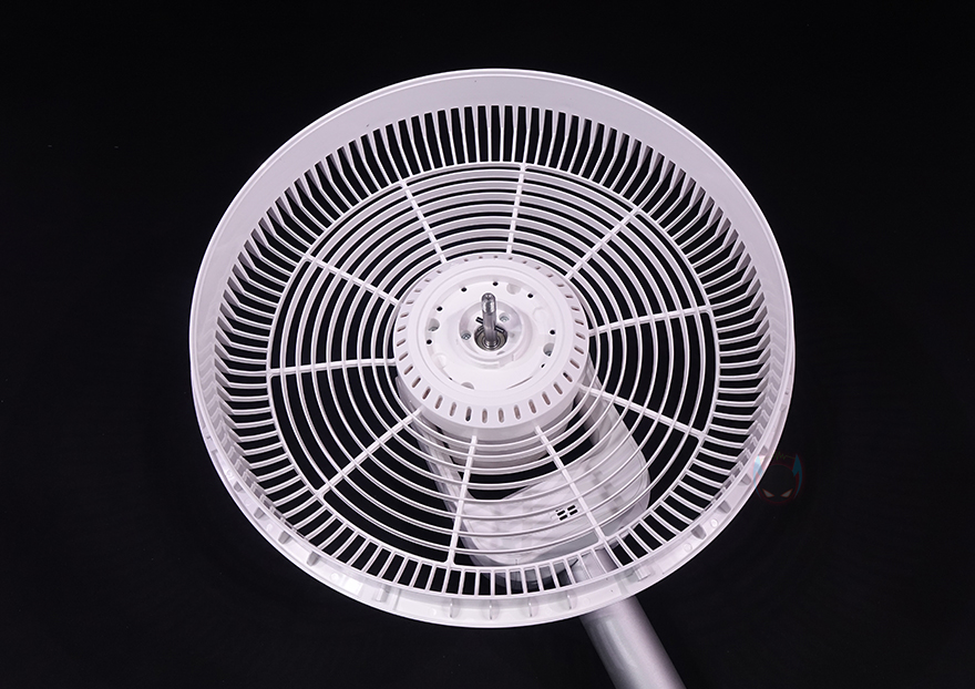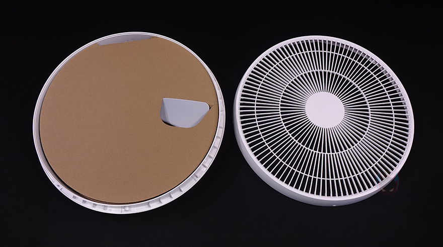 팬(Fan) 부분을 살펴보면, 전면 커버 가운데는 Smartmi 로고(logo)를 새겨놨으며, 홈은 손가락 굵기보다 작고 촘촘하게 해서 사고방지가 되도록 했습니다. 또한, 후면은 모터 부분으로 기존 Fan 시리즈와 달리 직관적으로 사용할 수 있는 버튼들이 다수 배치되어 있는데, 버튼마다 기능 표기를 해놔서 쉽게 이해할 수 있고, 바로 위에는 작동상태를 확인할 수 있는 LED 인디케이터도 적용되어 있죠.