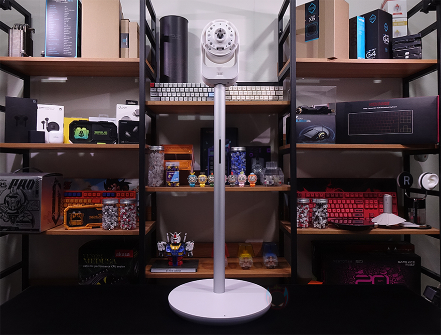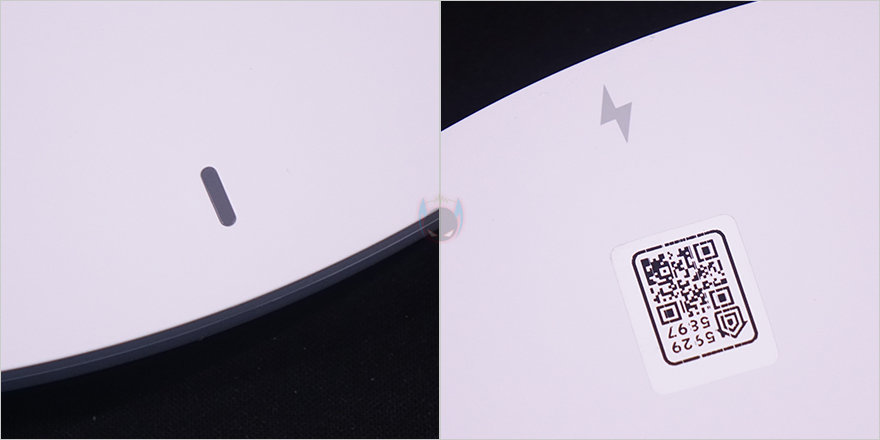 그래도, 개봉 시 팬, 받침대, 스탠드 조립은 기존의 Fan 시리즈(series) 제품들과 크게 다르지 않아서 큰 어려움이 없습니다. 일단, 받침대와 스탠드를 조립하는데, 그전에 받침대 같은 경우에는 기존 Fan 시리즈의 제품들 받침대와 동일한 330mm 크기를 가졌으며, 무게는 약 1.6kg입니다. 받침대 앞뒤로는 충전 상태를 확인할 수 있는 LED 인디케이터와 충전 연결부 표시를 해놨죠. 그리고, 충전 연결부 표시부근에는 애플 홈키트 어플 연동의 위한 QR코드도 표기해 놨습니다.