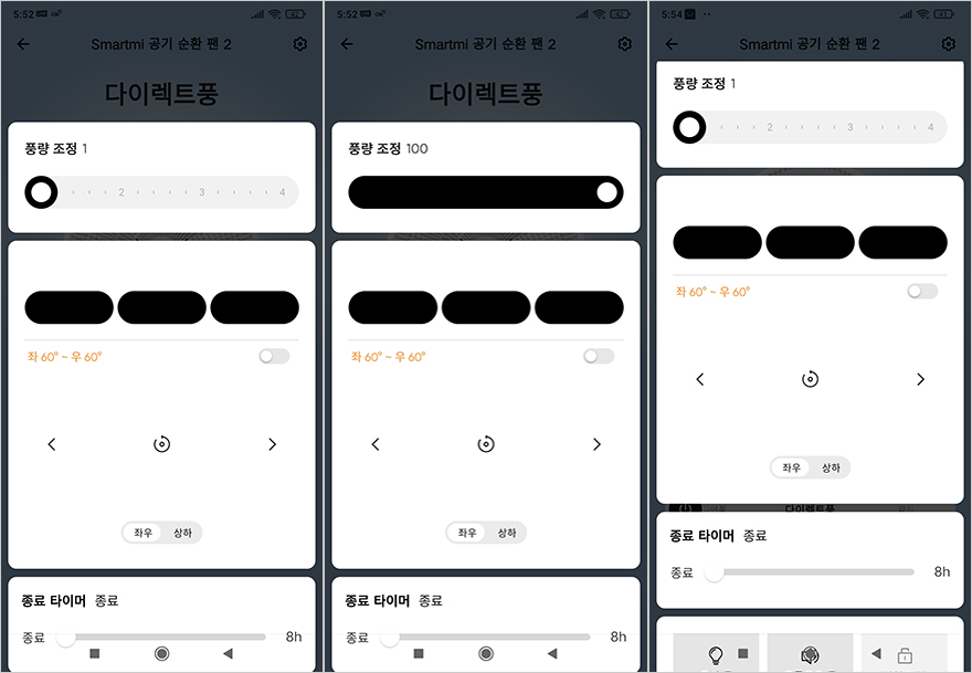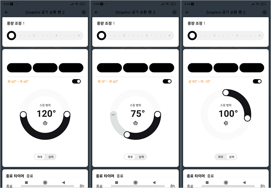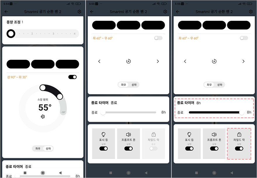 물론, 스마트미 써큘레이터 선풍기(Smartmi Circulator Fan)는 어플 지원도 하기 때문에 주변에 리모컨이 없을 때는 어플로 작동시킬 수 있습니다. 일단, Smartmi App을 설치한 후, 써큘레이터 선풍기 전원을 켜면 자동으로 페어링 모드가 시작됩니다. 그럼, Smartmi App을 실행하면, 자동으로 제품 추가 안내가 나오는데, 만약 나오지 않는다면, 어플 맨 오른쪽 상단에 제품 추가를 눌러서 안내에 따라 진행하면 어렵지 않게 어플 연동을 마칠 수 있습니다. 그리고, Smartmi App을 통해서는 더 세밀하게 써큘레이터 선풍기를 사용할 수 있는데, 다이렉트/자연/감지 3가지 모드를 비롯해, 풍량조절은 Fan 시리즈 제품들과 마찬가지로 100단계로 조절할 수 있으며, 좌우/상하 회전 범위로 설정할 수 있습니다. 또한, 타이머, 표시 등, 프롬프트 톤 외에도 아이보호를 위한 차일드 락 기능도 On/Off 할 수 있죠.