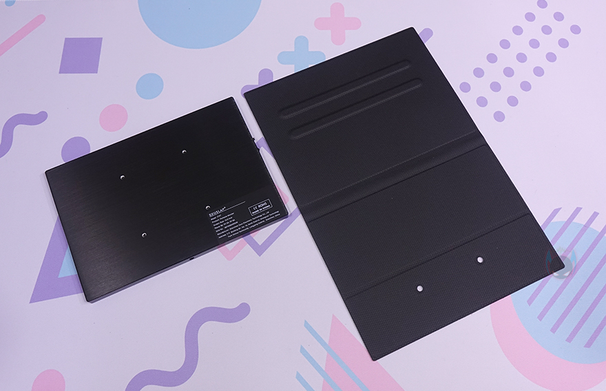 그럼, 본격적으로 제우스랩(Zeuslap) Z10T 포터블 모니터를 살펴보는데, 제우스랩 포터블 모니터 제품들은 모두 기본적으로 보호케이스를 제공해주고 있죠. Z10T 역시 크기에 맞춘 보호케이스를 기본 장착하고 있습니다. 물론, 각도조절도 가능하죠. 또한, 보호케이스 후면을 보면 2개의 고정 나사를 확인할 수 있는데, 나사를 풀면 케이스와 모니터를 분리할 수 있습니다.