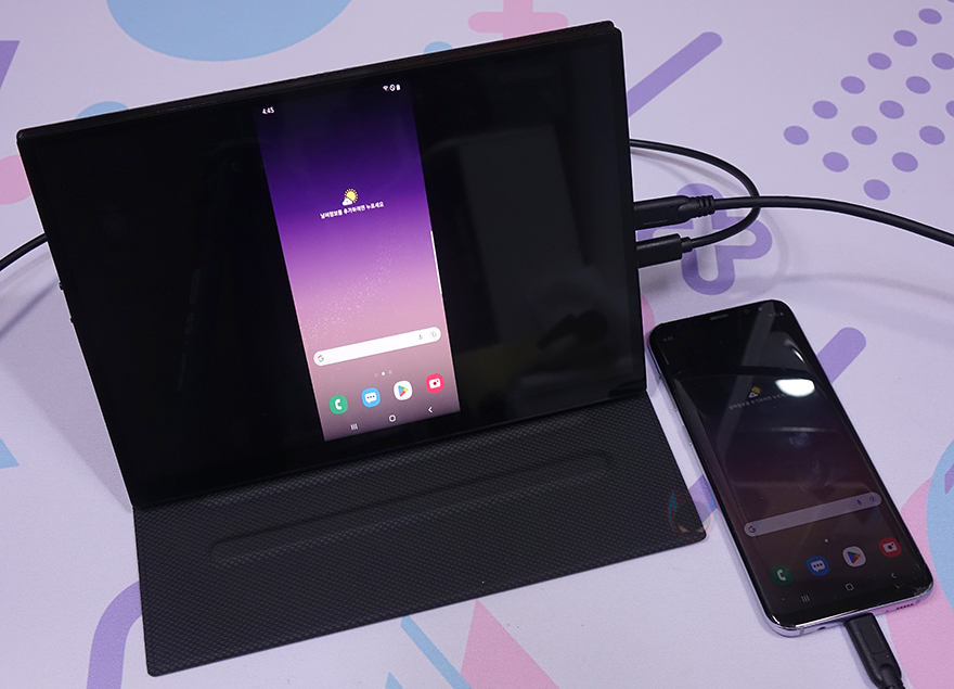 Z10T 포터블 모니터 역시 제우스랩의 다른 포터블 모니터 제품들과 마찬가지로 모바일 기기와 콘솔기기와도 연결 지원을 하는데, 모바일기기 같은 경우 삼성 갤럭시 제품이라면 Dex 연결이 자동으로 이루어집니다. 물론, 다른 스마트폰 연결 시 스마트폰 화면이 그대로 Z10T에 공유되는데, 이때 Z10T 터치 기능이 있기때문에 그대로 사용할 수 있습니다. 다만, 스마트폰 제품에 따라서 USB Type-C 케이블만 사용해도 되는경우가 있고, 전원어댑터와 함께 사용해야하는 경우가 있기때문에 이부분은 사용자 기기에 따라 참고해서 사용해야하겠습니다. 그리고, 콘솔기기 같은경우 대표적인 닌텐도스위치 연결시 역시 전원어댑터와 USB Type-C 케이블 함께 사용해야 하며, Z10T에서 터치 기능은 작동하지 않습니다.