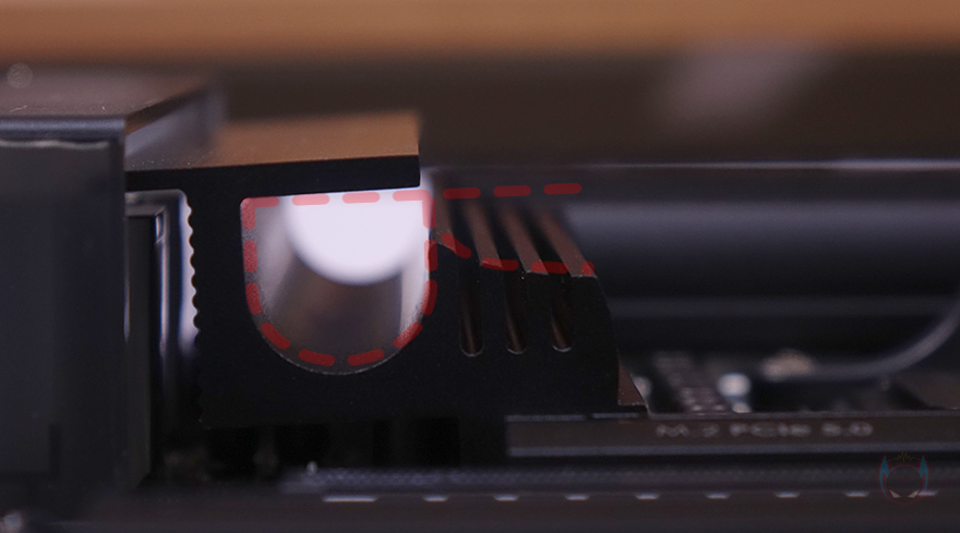 그럼, 본격적으로 ASUS ProArt B650-CREATOR 메인보드 레이아웃을 살펴보는데, 전체적인 메인보드 색상은 ProArt 콘셉트에 맞춰 블랙 색상계열이며, CPU 소켓 커버 같은 경우에도 제품 컨셉에 맞춰서 디자인을 적용습니다. 그리고, 주변 전원부 같은경우에도 블랙 색상의 방열판을 적용하고 있는데, 심플한 디자인과 함께 측면에서 보면 R자 형태 디자인이라는 걸 확인할 수 있습니다. 그리고, 백패널 방향으로는 반투명 블랙 스모크 커버를 적용하고 있죠. 심플하면서도 고급스러운 느낌을 살리기 위해서 디자인에 많이 신경 쓴 모습입니다.