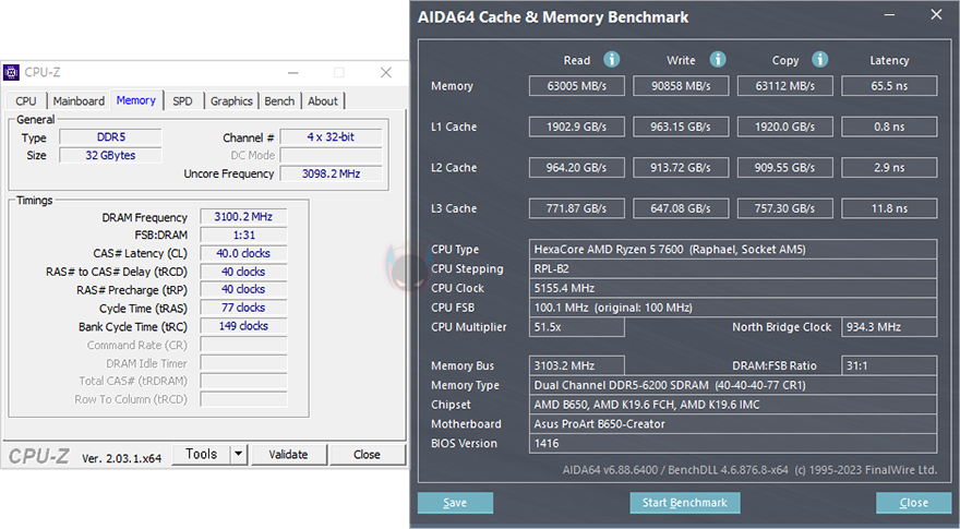방금 언급했듯이 ASUS ProArt B650-CREATOR 메인보드는 B650 칩셋을 탑재했기 때문에 CPU와 메모리 오버클럭 둘 다 지원합니다. 하지만, 최근 CPU들은 대부분 최대 부스터 클럭이 고클럭이라 점점 CPU 오버클럭의 필요성은 낮아지고, 오히려 DDR5로 넘어오면서 메모리 오버클럭 필요성이 높아졌죠. 그래서, ProArt B650-CREATOR 메인보드로 메모리 오버클럭만 시도를 해봤는데, XMP나 EXPO 프로파일이 적용된 메모리라면 프로파일값을 불러와서 쉽게 적용됩니다. 그리고, ProArt B650-CREATOR 메인보드 역시 다른 메인보드 제품들처럼 최대 오버클럭은 6400 MHz까지 지원하지만, 대부분 6200 MHz이 안정적으로 적용되는 것처럼, ProArt B650-CREATOR 메인보드도 6200 MHz까지 안정적으로 적용되었습니다.