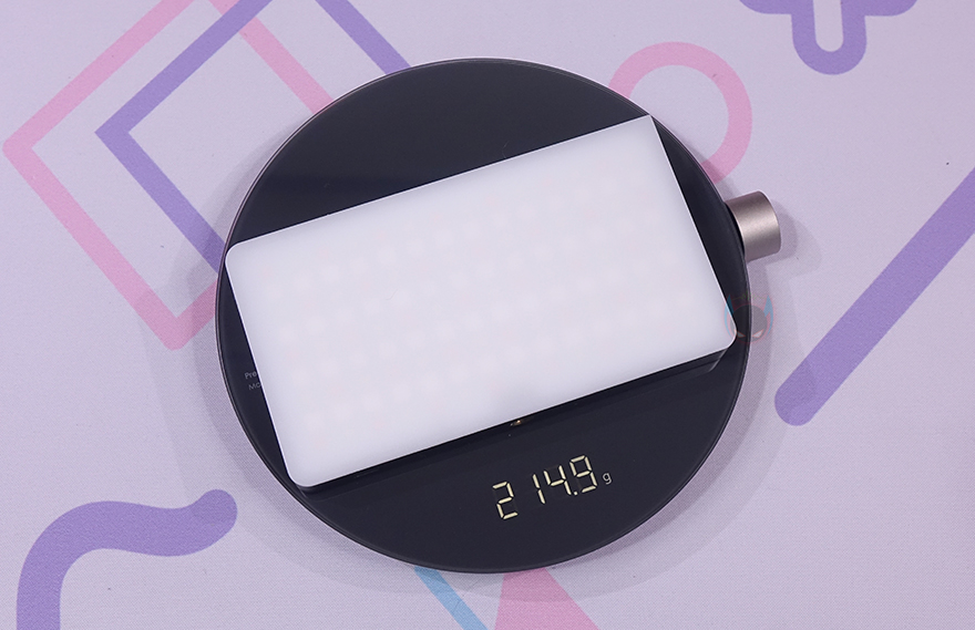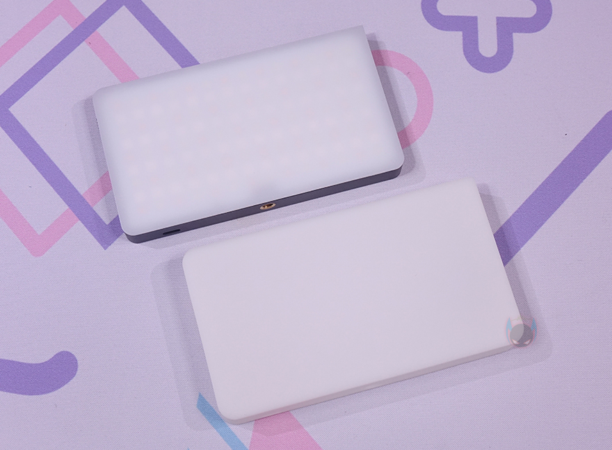 그럼, Ulanzi(울란지) LT002 RGB 조명을 살펴보는데, 개봉 시 LT002 조명에는 디퓨저(Diffuser)가 기본 장착되어 있습니다. 디퓨저를 분리한 상태에서 LT002를 살펴보면, 시작에서 언급했듯이 크기는 139.9x77.9mm로 7인치(inch)입니다. 요즘 스마트폰과 비교해 보면 약간 더 큰 수준이고, 무게도 약 215g으로 약간 무거운 편이라 스마트폰을 휴대하는 만큼 큰 불편함은 없겠습니다.