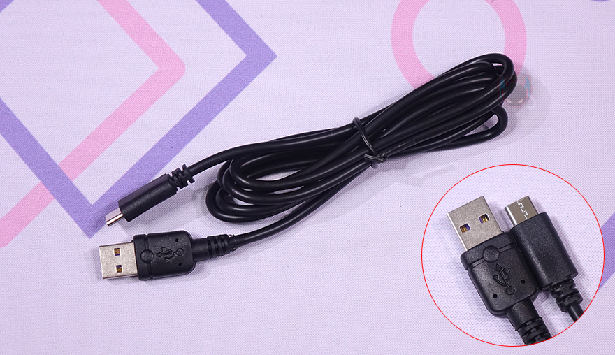 조명 후면에는 1.06인치(inch) 크기의 디스플레이(Display)가 적용되어 있으며, 바로 오른쪽에 기능 버튼이 배치되어 있는데, 화살표 버튼은 색온도/밝기/색조&채도 등이 세부 설정메뉴를 선택할 수 있는 스위치(switch)이며, 바로 오른쪽에 회전화살표 버튼은 색온도(CCT)/HSI(RGB)/조명모드(SCENE)로 전환할 수 있는 모드(Mode), 그리고 그 아래 +와 -는 각각 수치값을 조절할 때 사용됩니다. 최근에 출시되었던 VL49 RGB Pro 미니 조명과 기능이 동일하죠. 그리고, 왼쪽 한편에는 모델명과 함께 전력과 배터리용량 표기를 확인할 수 있습니다. 끝으로, 기본 제공되는 USB 충전케이블은 총 1.5m 길이에 USB Type-C to A 인터페이스를 가졌죠.